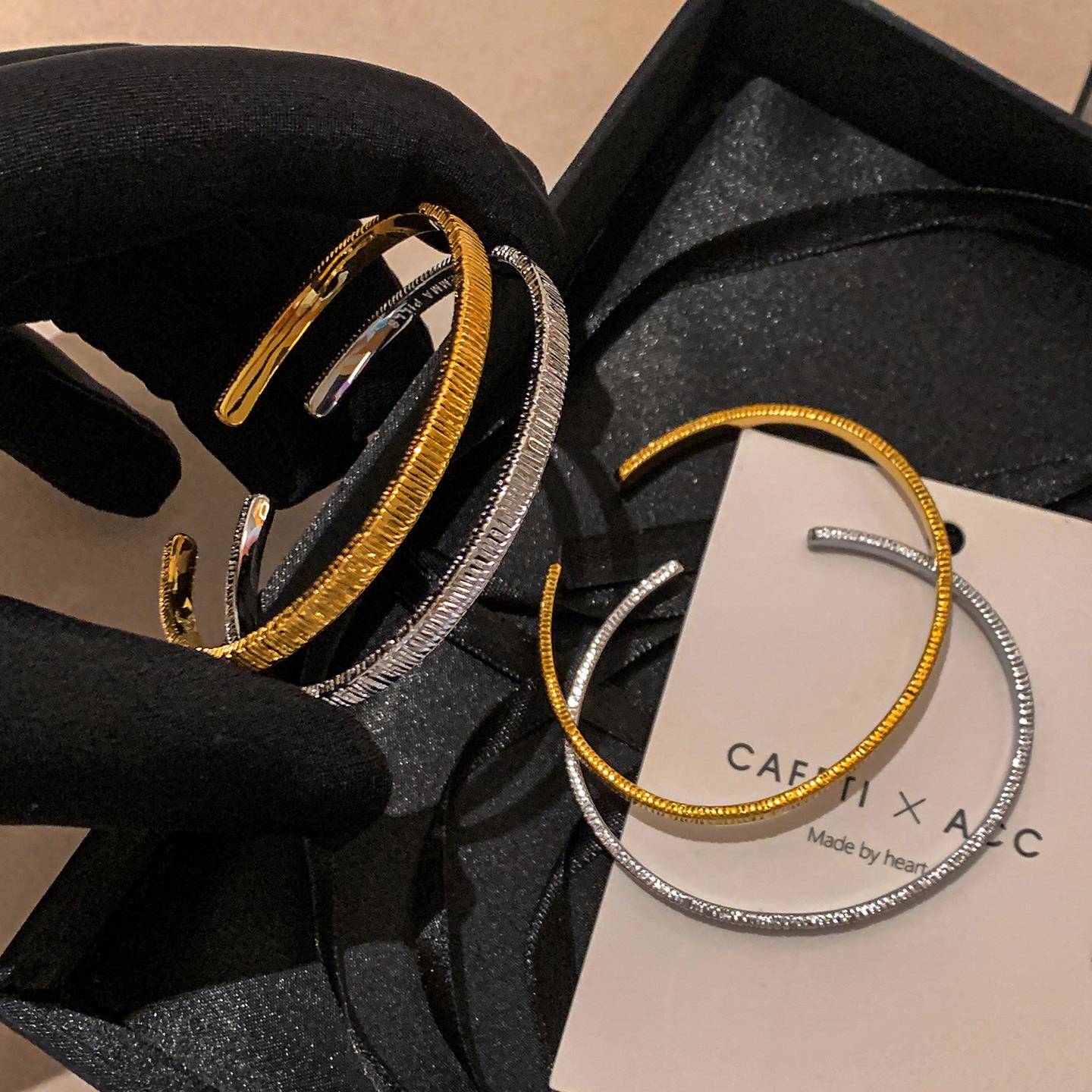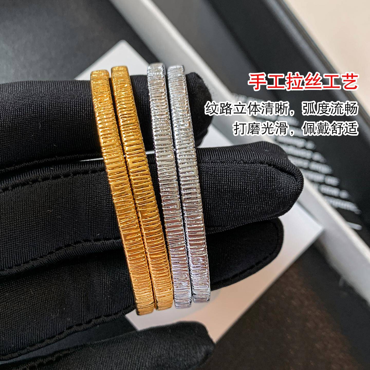 重工金属银色羊角条纹开口手镯夏天简约叠戴手链女款轻奢小众设计