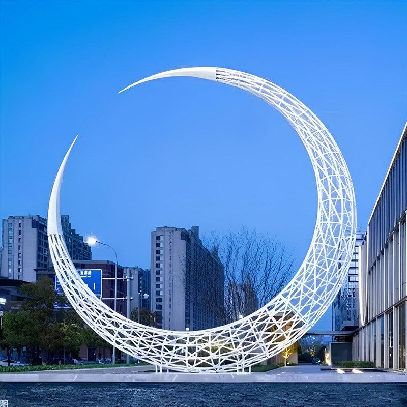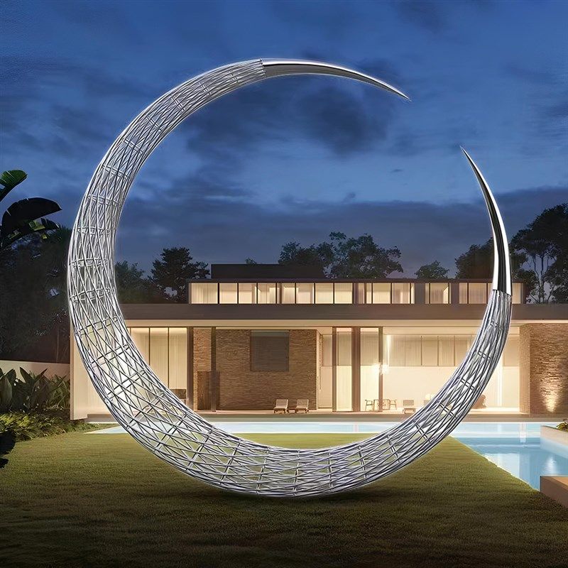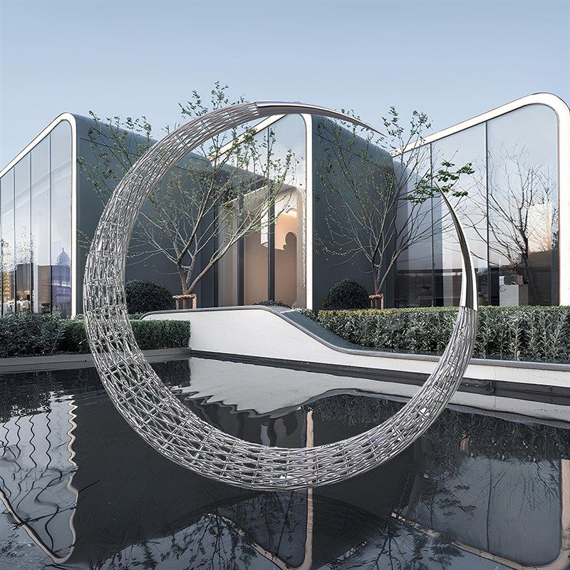优选不锈钢镜面镂空月亮雕塑售楼处营销中心水池水景摆件地产酒店
