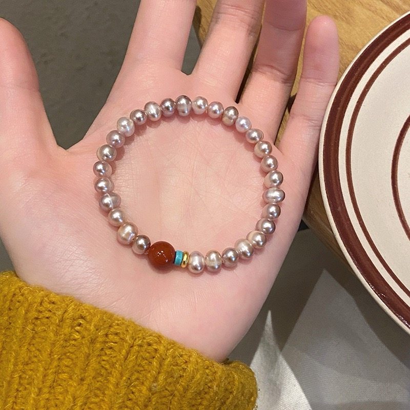 法式粉紫色热卖串珠手链复古宫廷风2025年新款气质仿南红玛瑙手饰