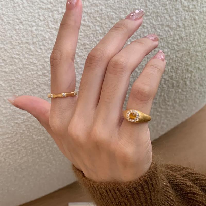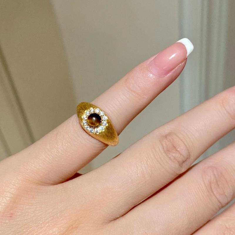 屈臣氏甄选拉丝工艺虎眼石尾戒纯银S925金色戒指招财小指女超小特