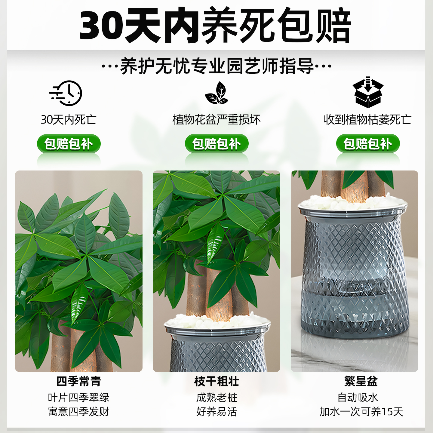 发财树小盆栽老桩旺宅招财树办公室内桌面植物花卉水培绿植盆景