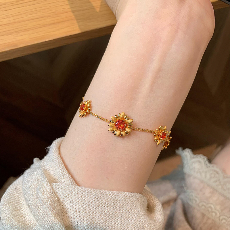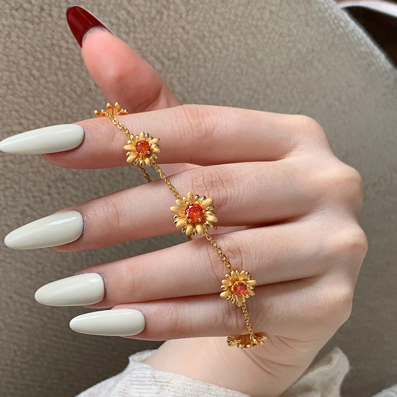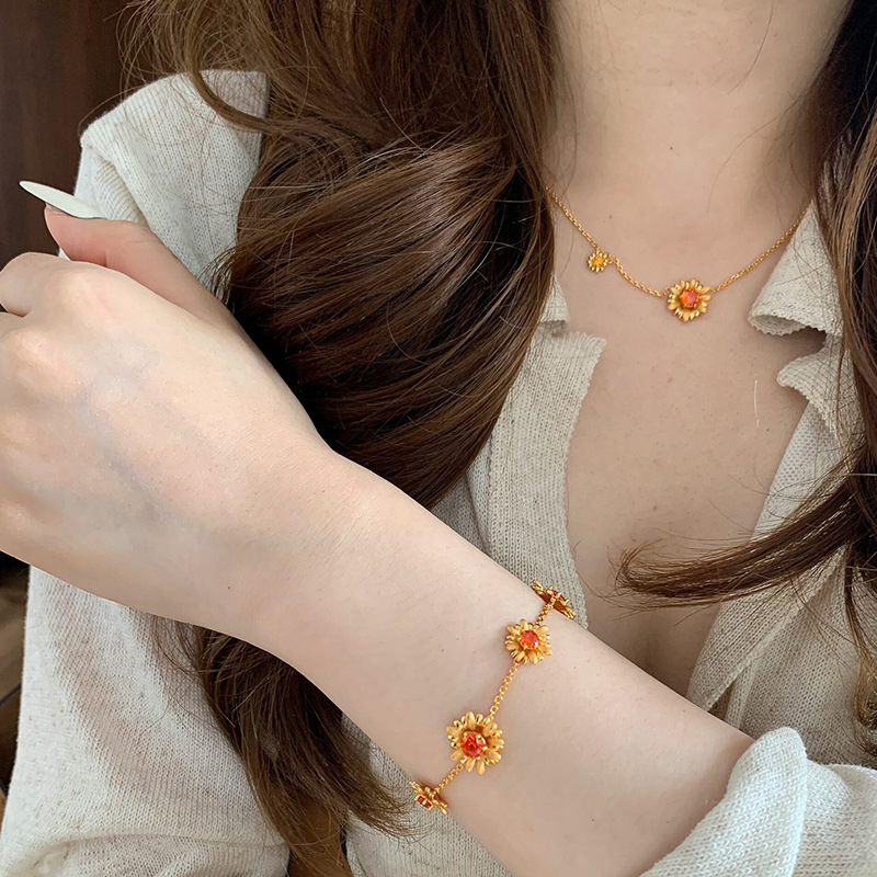 格调小红书爆款花朵拉丝小雏菊点缀橙色闪钻手链叠戴项链耳钉配饰