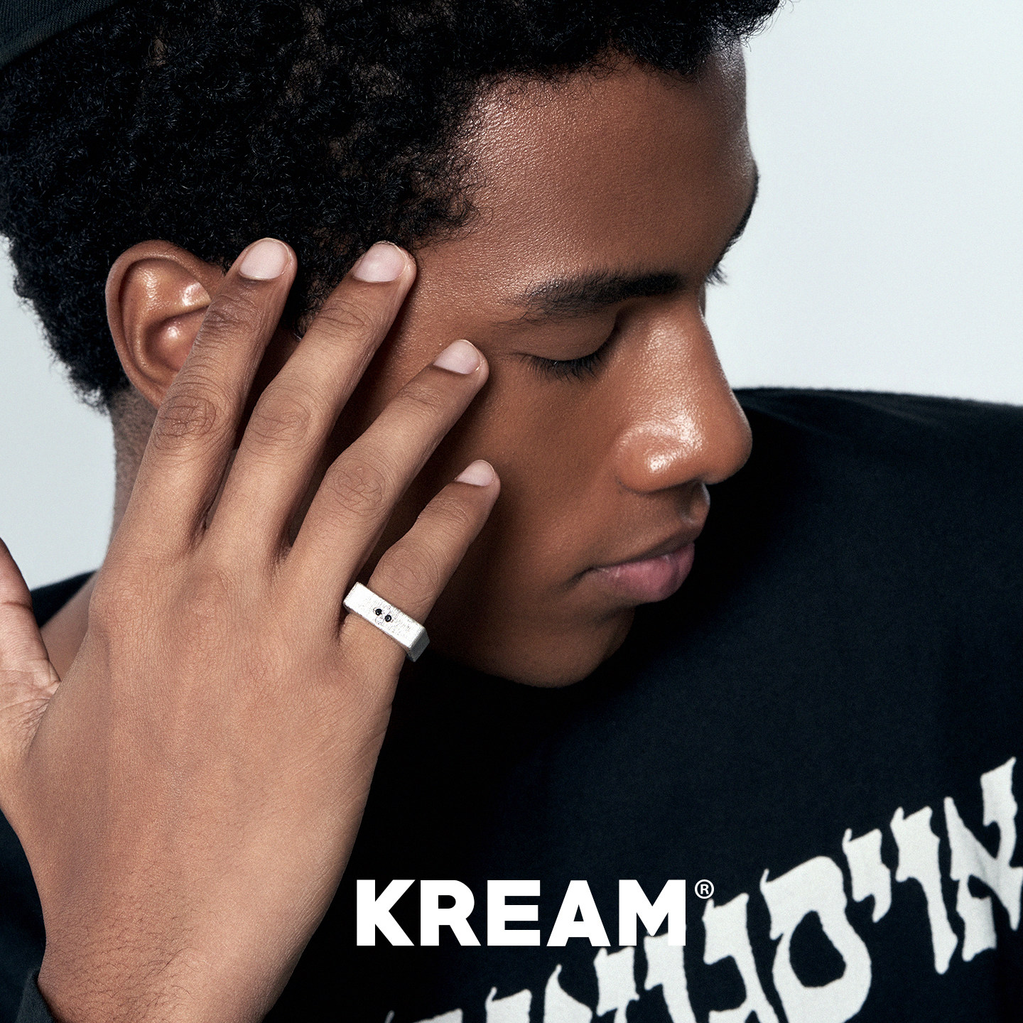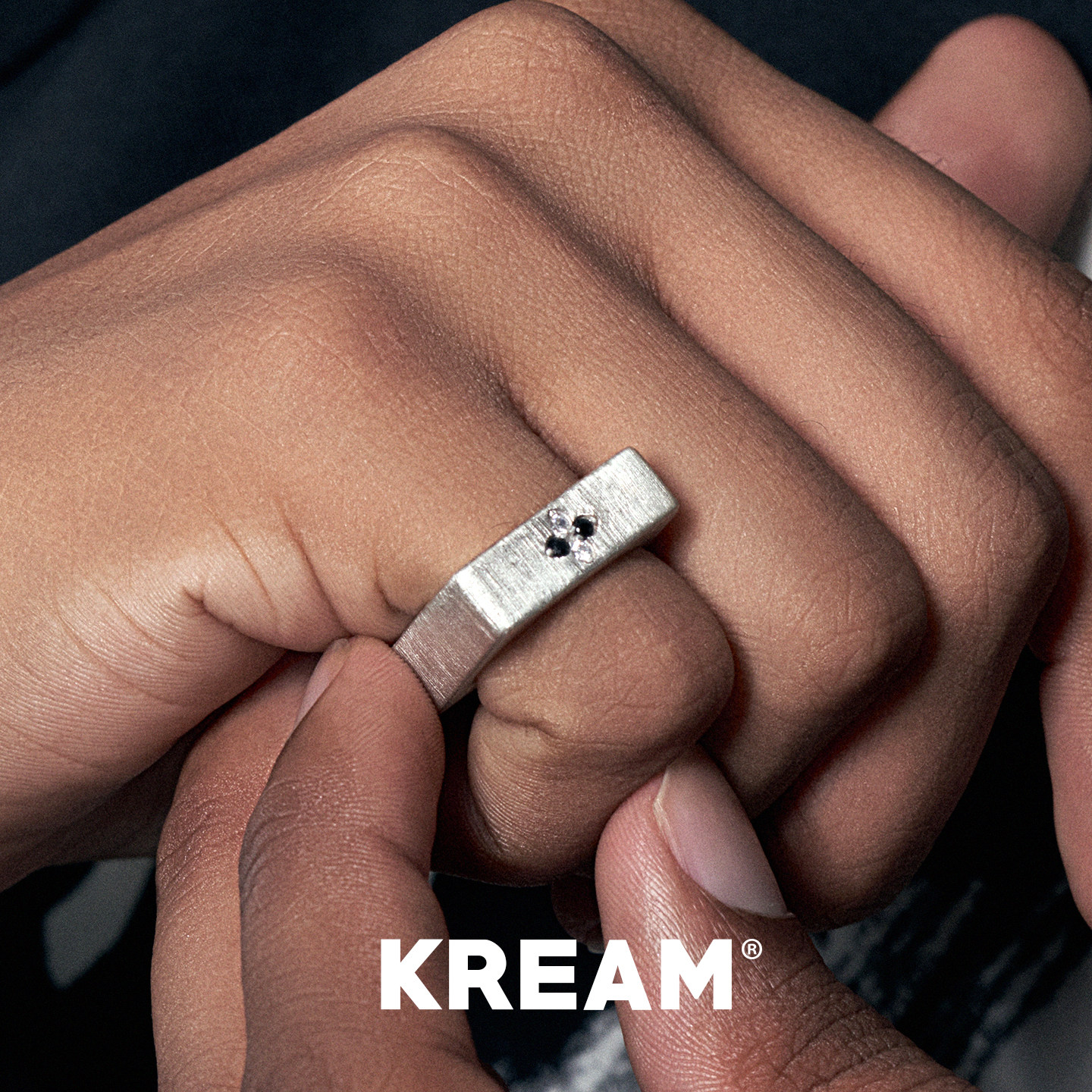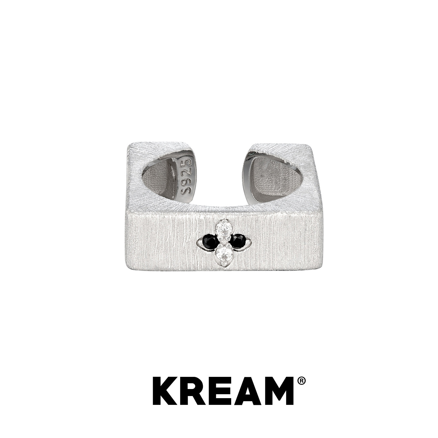 KREAM 925银 极简拉丝开口戒指男锆石十字方形个性指环女高级情侣