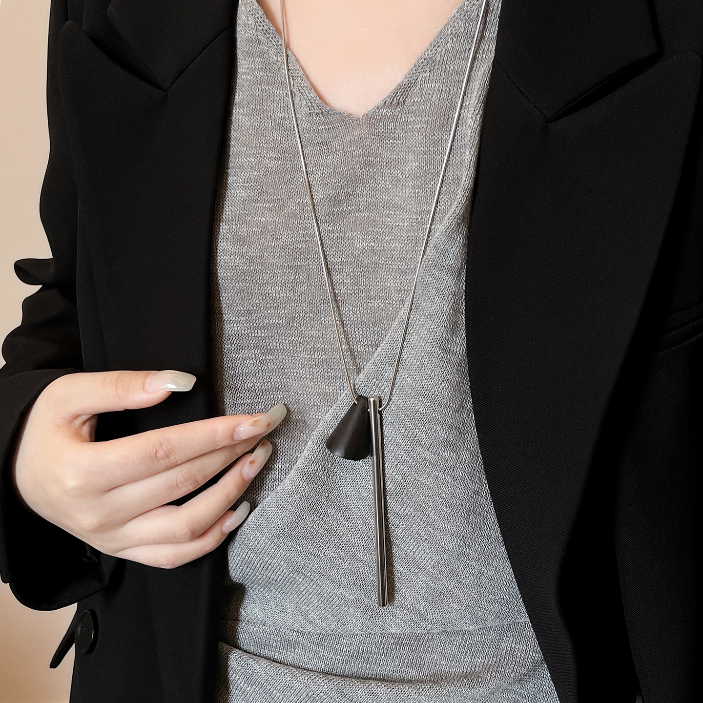 黑色几何三角金属项链女款2025新款长款毛衣链高级感轻奢小众配饰