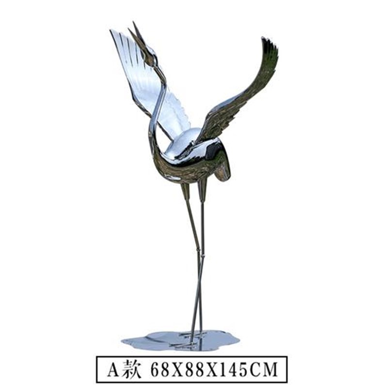 户外不锈钢d镜面仙鹤雕塑售楼部园林公园景观艺术装饰落地水池摆