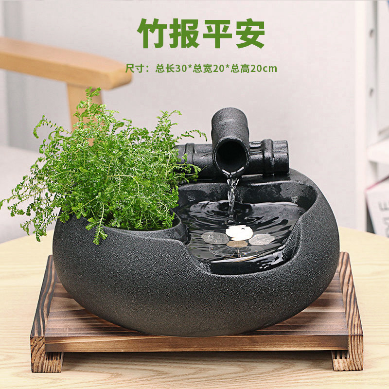 陶瓷流水器摆件桌面招财水景喷泉创意客厅办公室水景喷泉鱼缸送礼