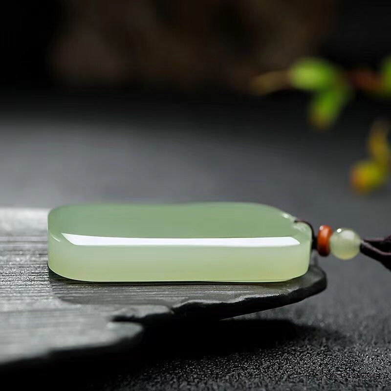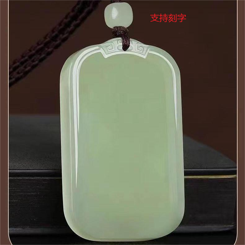 新疆天然青白玉平安无事牌浅鸭蛋青男女款玉石面包牌吊坠刻字礼物