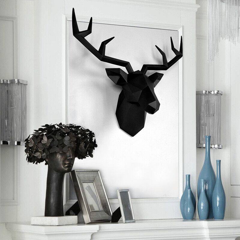 几何块面鹿头墙面装饰品壁挂创意客厅酒吧立体墙挂件招财麋鹿壁饰