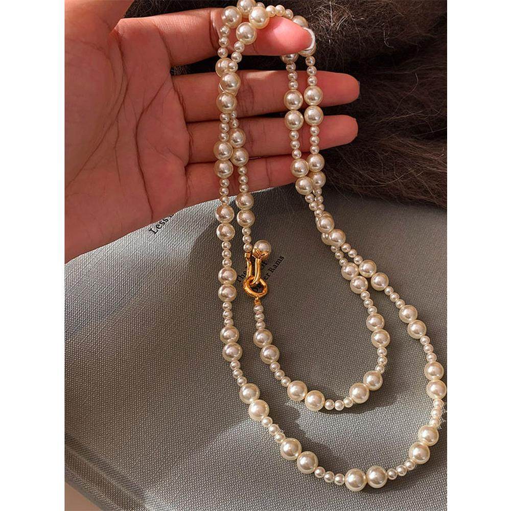 chomelkinsey长款澳白色珍珠项炼多层叠戴毛衣炼秋冬轻奢小众颈炼