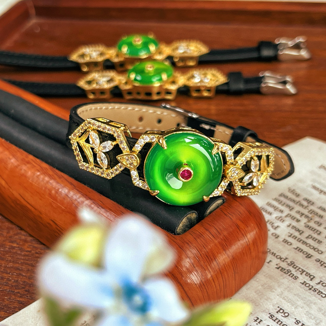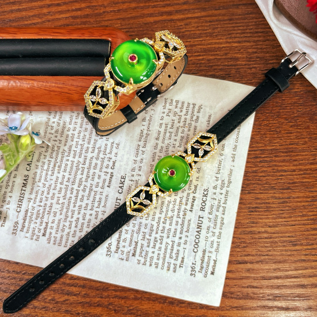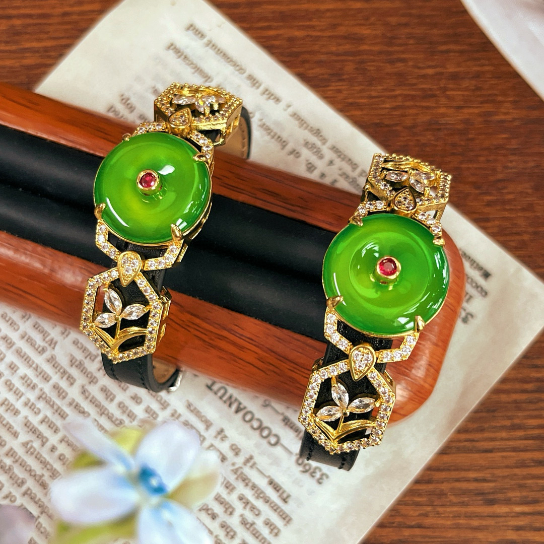 高品质天然绿玉髓平安扣手环个性宽版手表带手链女小众