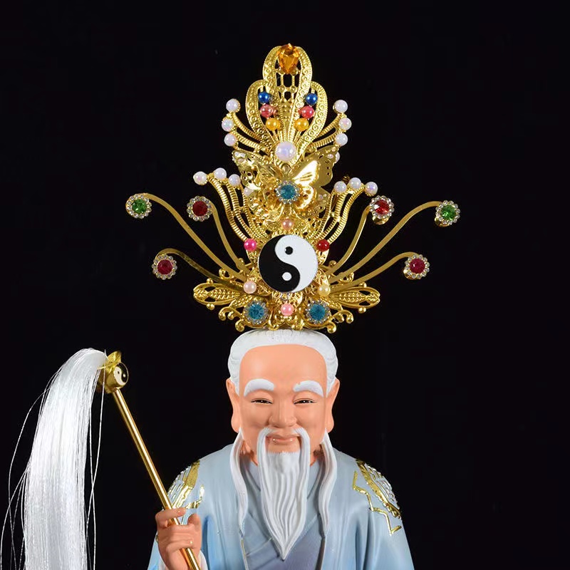 三清道祖太上老君神像凤冠头饰太极八卦头冠佛像帽子配饰摆件凤冠