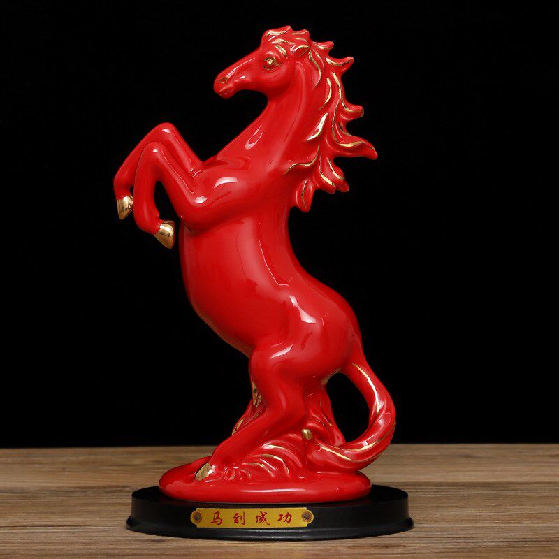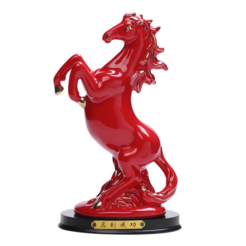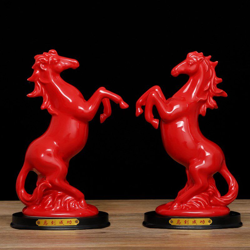 红色陶瓷马摆件十二生肖马客厅玄关装饰品瓷器红马招财马