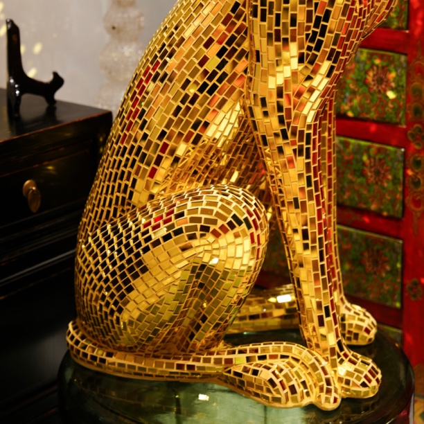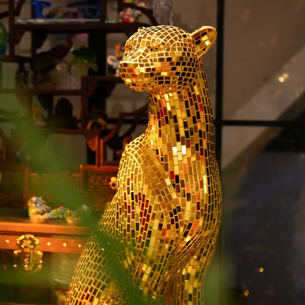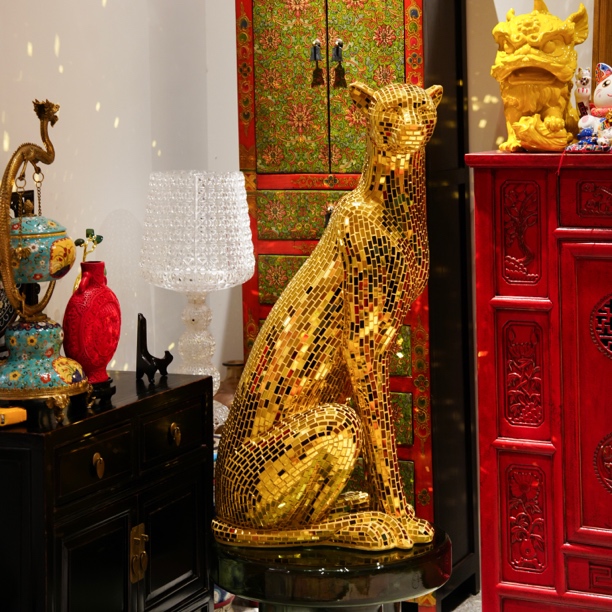 【本尼家】马赛克手工贴片装饰家居客厅玄关摆件中号豹子
