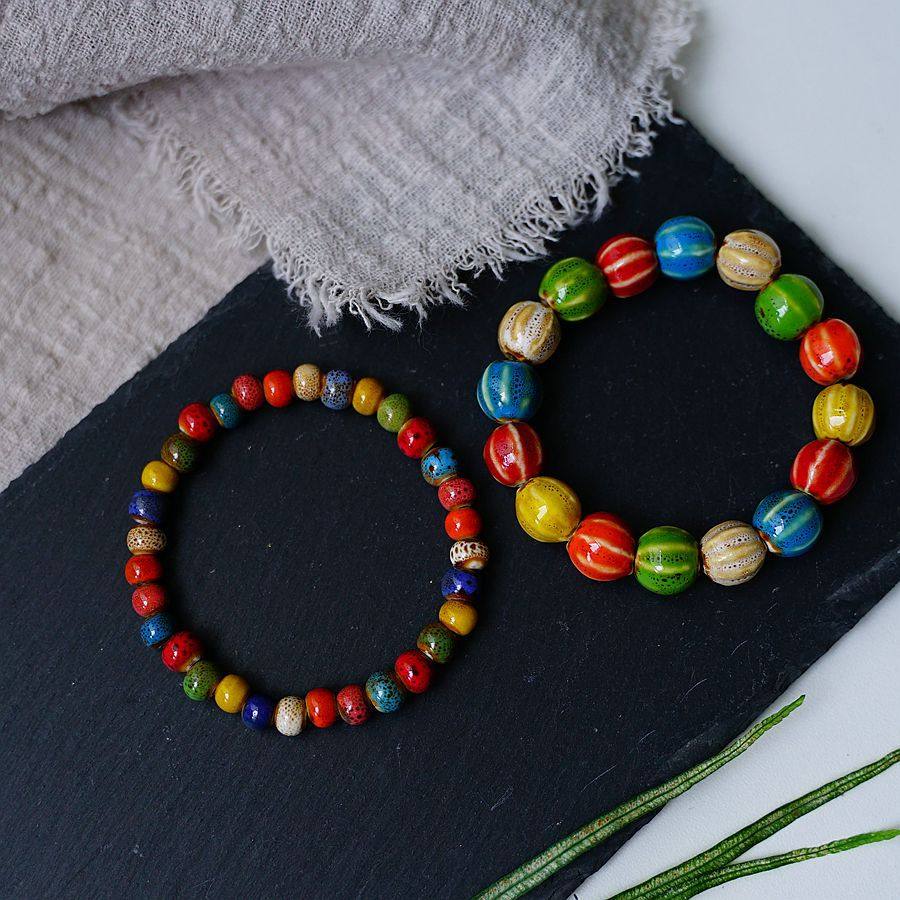 民族风文艺景德镇花釉陶瓷花釉渐变彩色串珠手链 小众设计手串