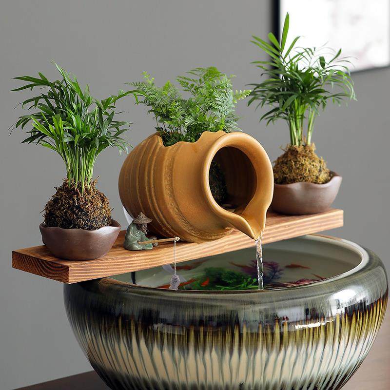 古法养鱼陶瓷罐流水器循环过滤增氧生态缸阳台造景鱼缸装饰摆件