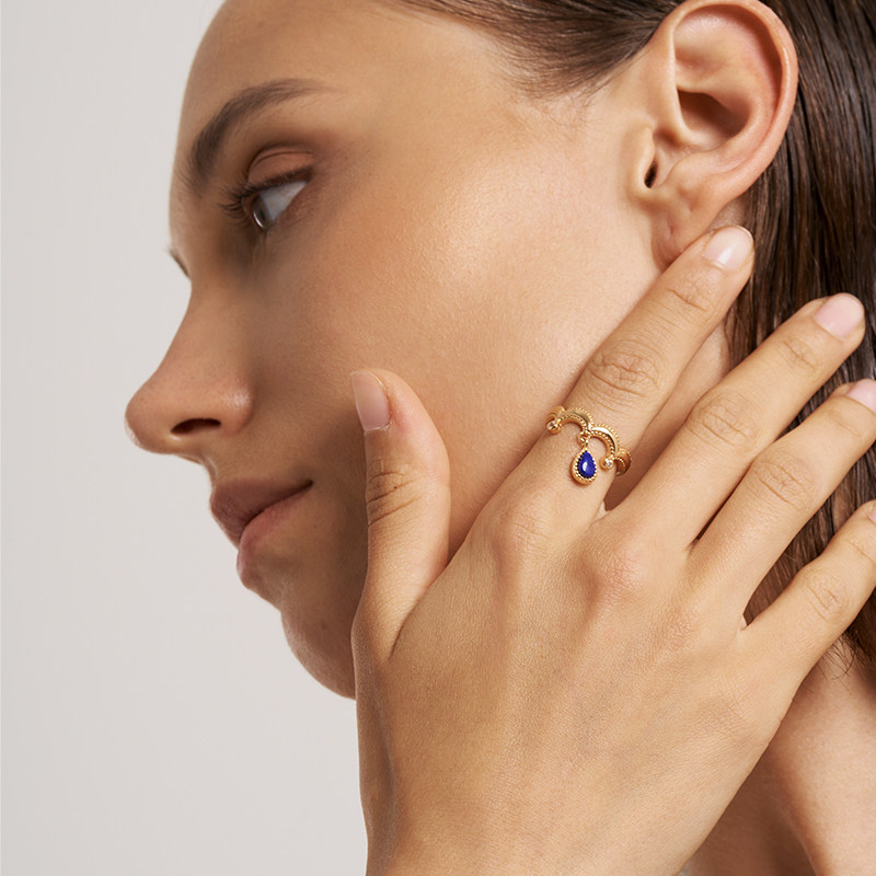 Amber Lollipop天然青金石戒指小众设计开口皇冠宝石食指环戒女款