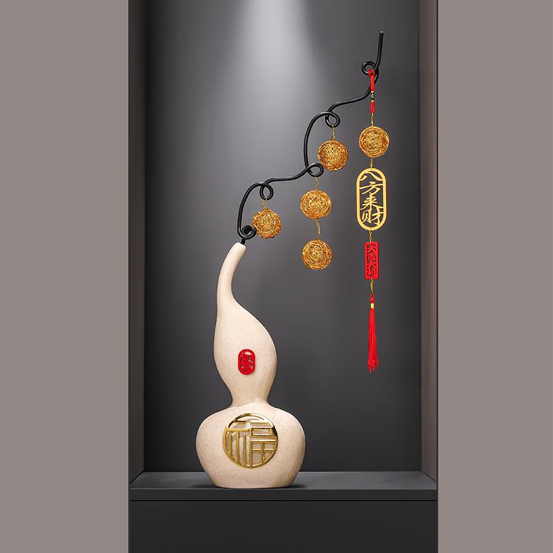 新中式陶瓷葫芦摆件壁龛细长格子玄关电视柜酒柜客厅乔迁新居礼物