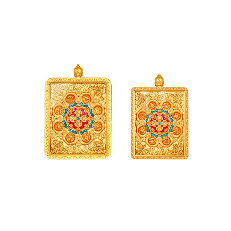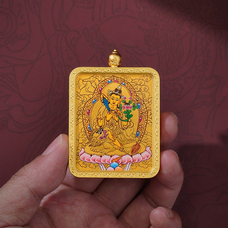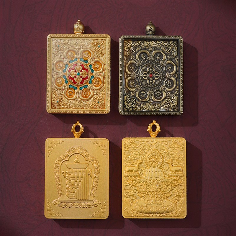藏式嘎乌盒唐卡画盒n黄铜古铜做旧风格精雕吊坠扎基拉姆五爷文殊