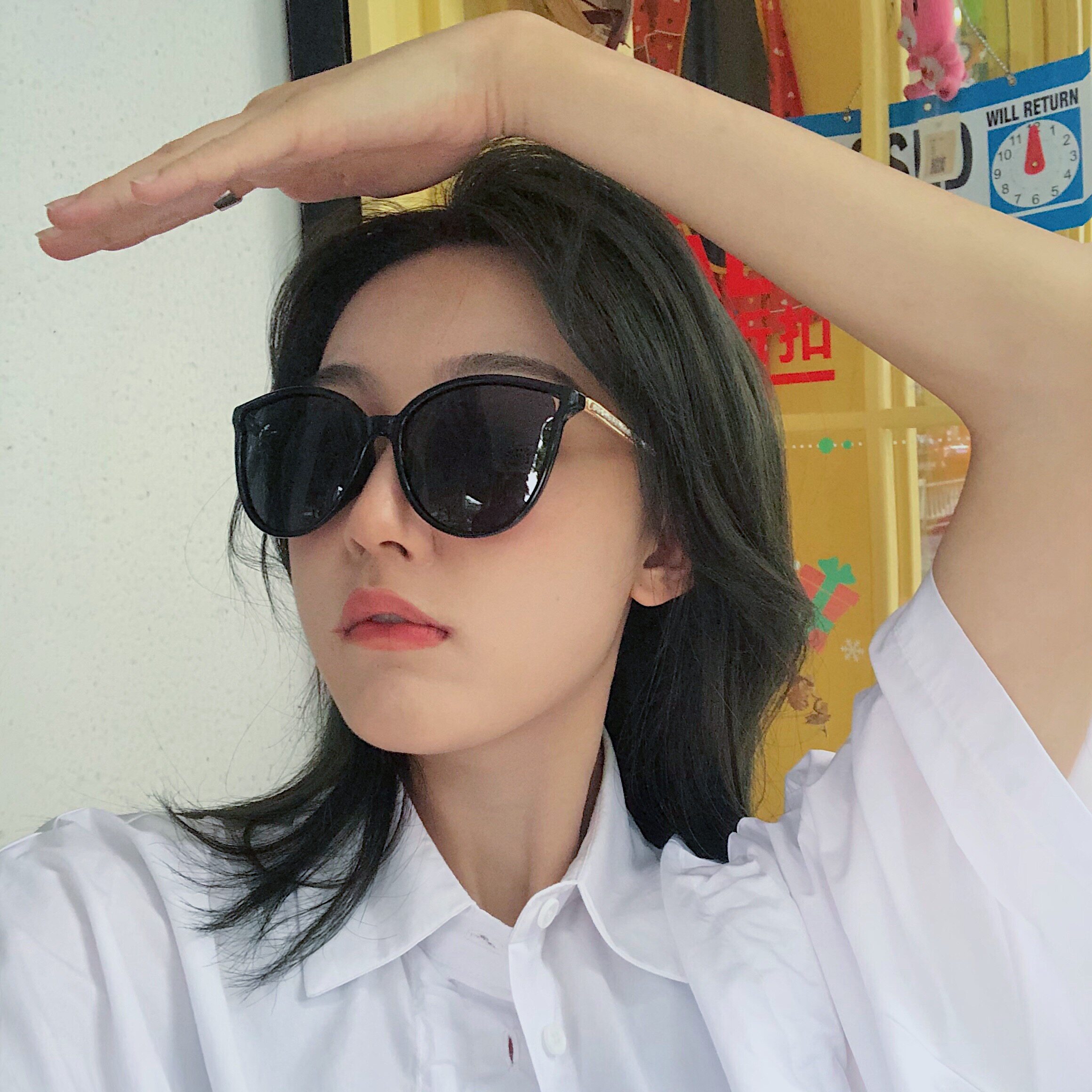 欧美时尚复古方框黑色偏光太阳镜女镶钻舒适大框圆脸墨镜防紫外线