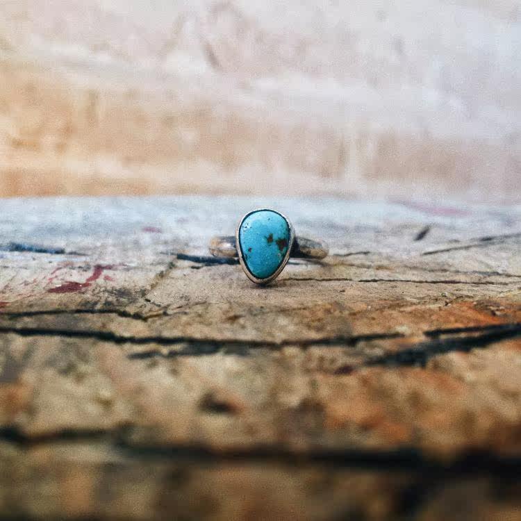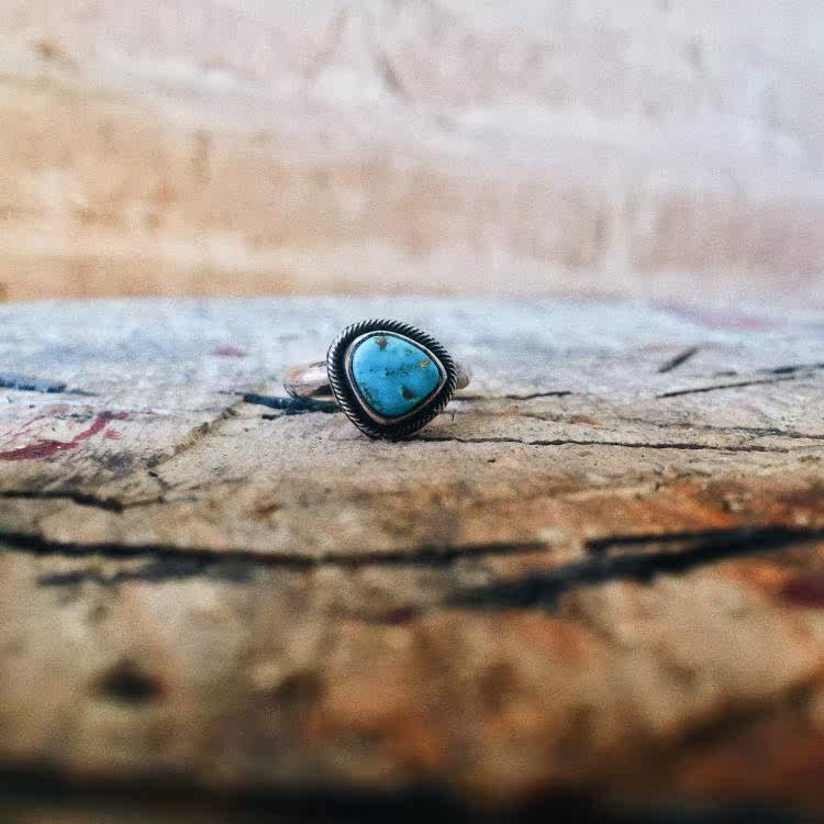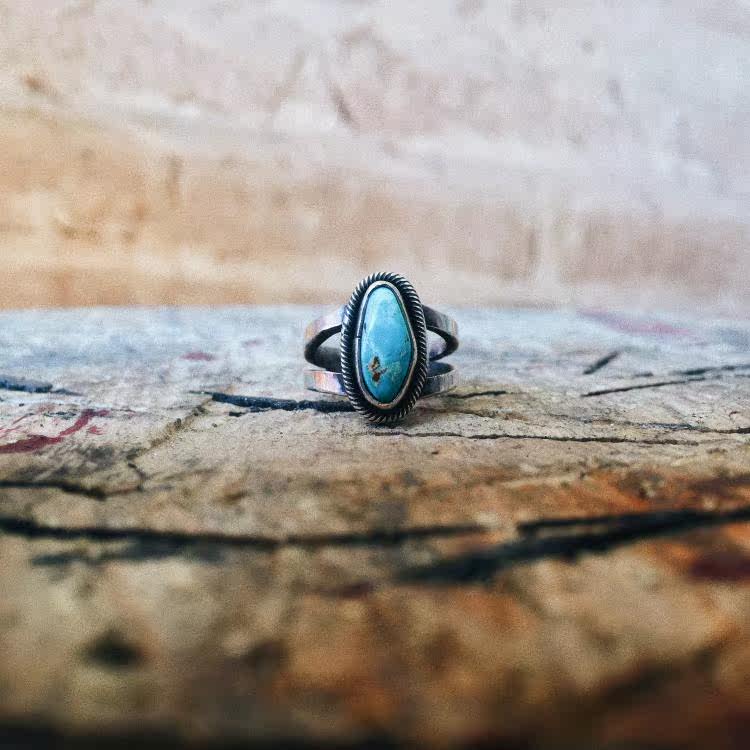 美国代购Turquoise◇手作复古波西米亚绿松石镶嵌925纯银定制戒指
