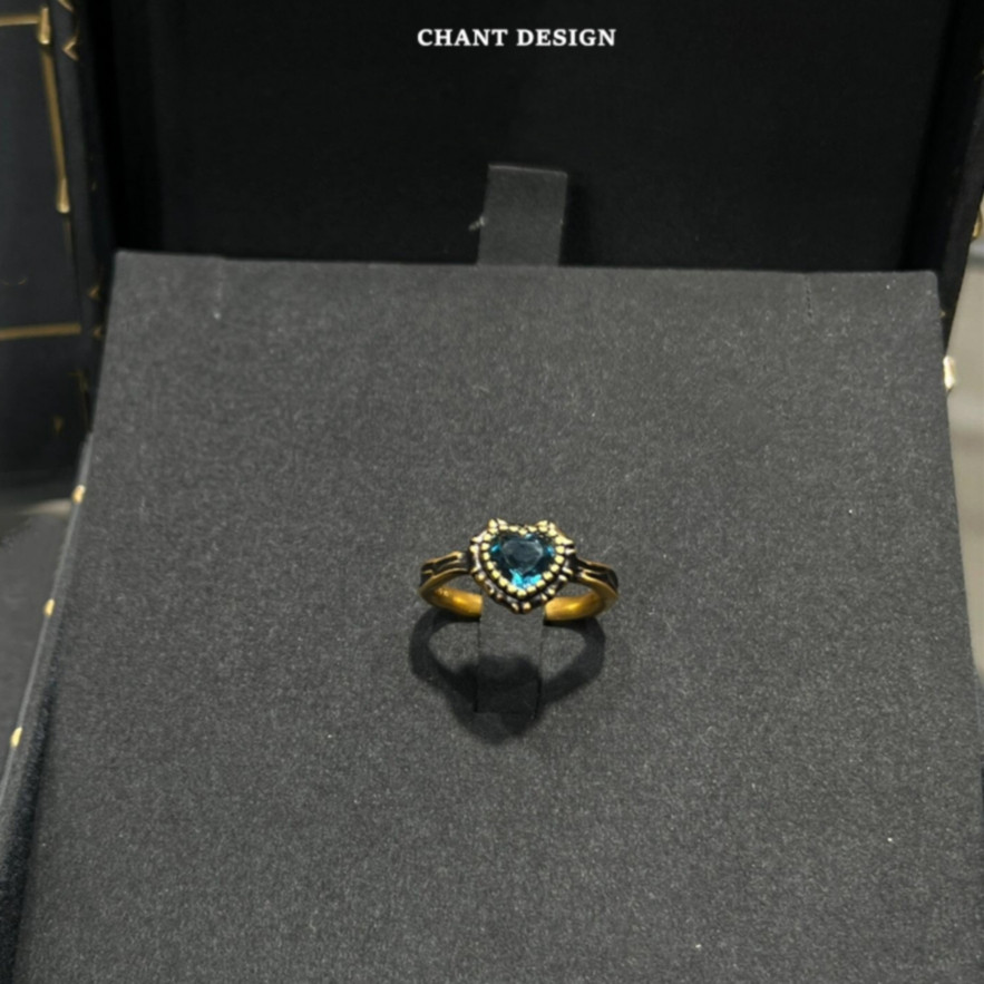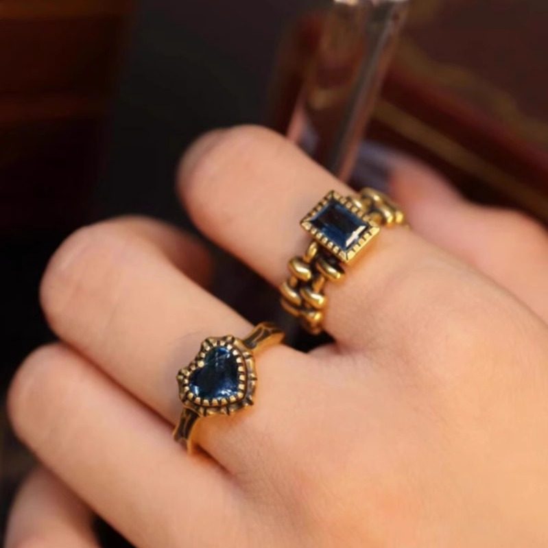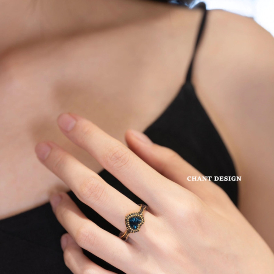 亚特兰蒂斯海洋之心爱心戒指女轻奢复古高级感蓝色心形指环礼物潮