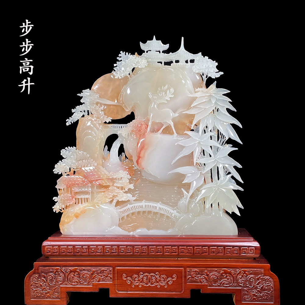 天然玉石原石雕刻山水摆件大型镇宅工艺品家居客厅电视柜装饰摆设