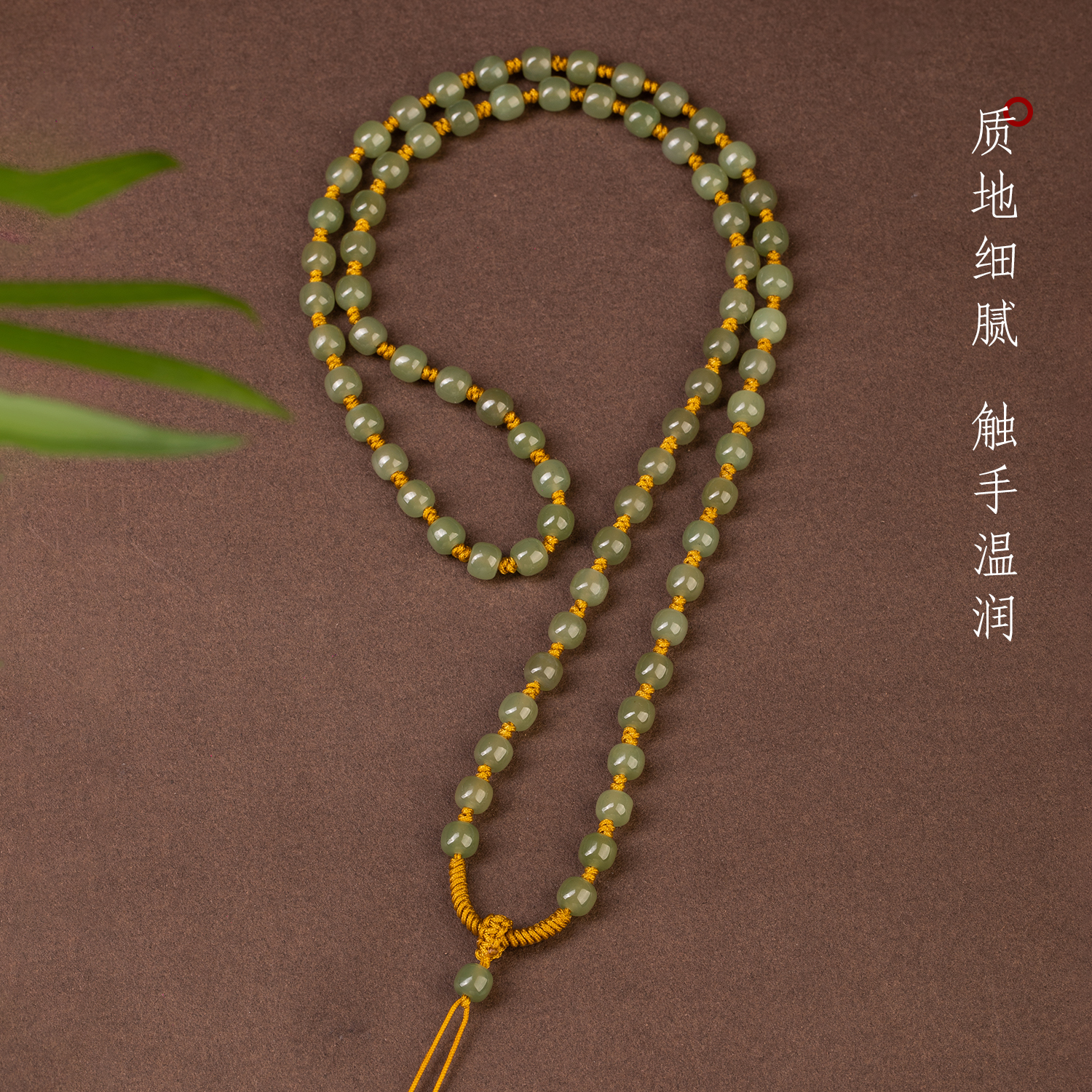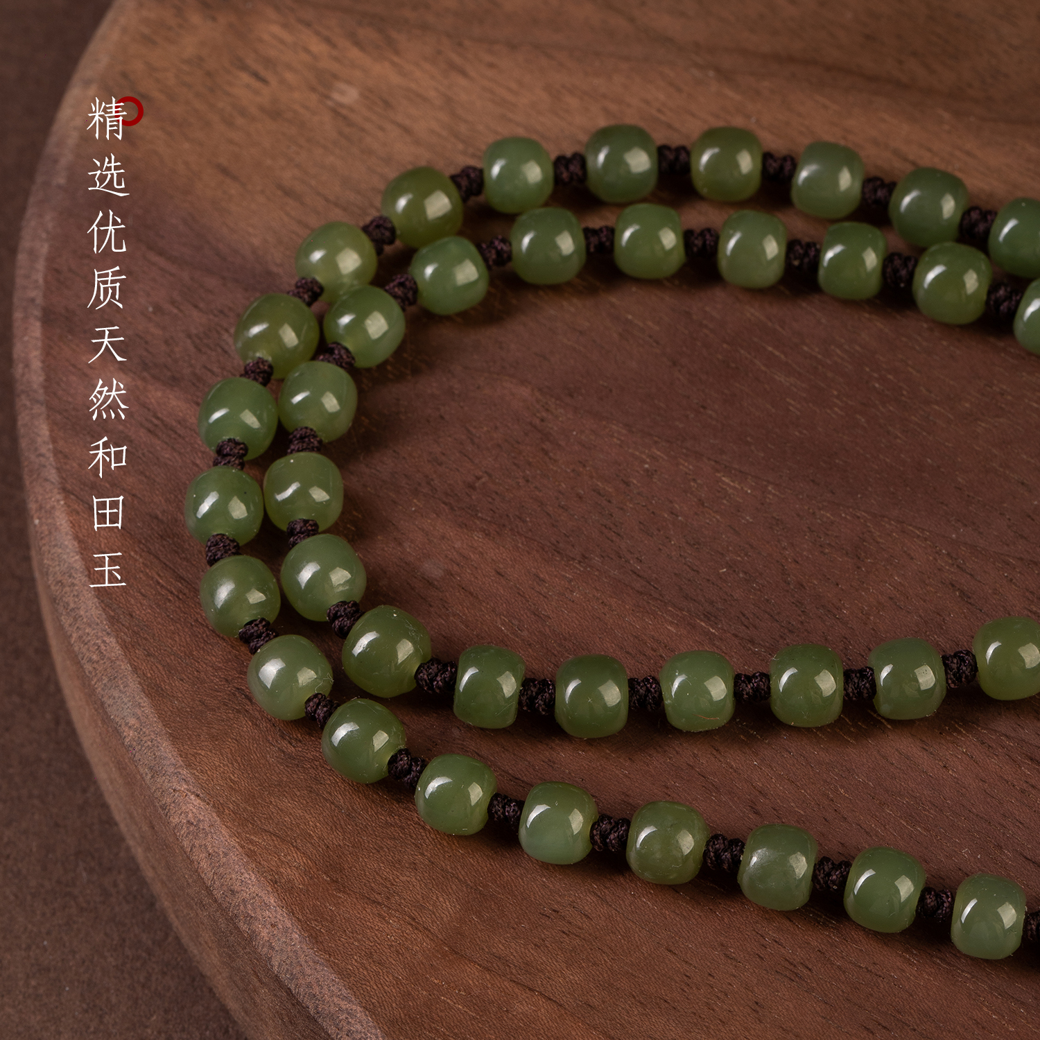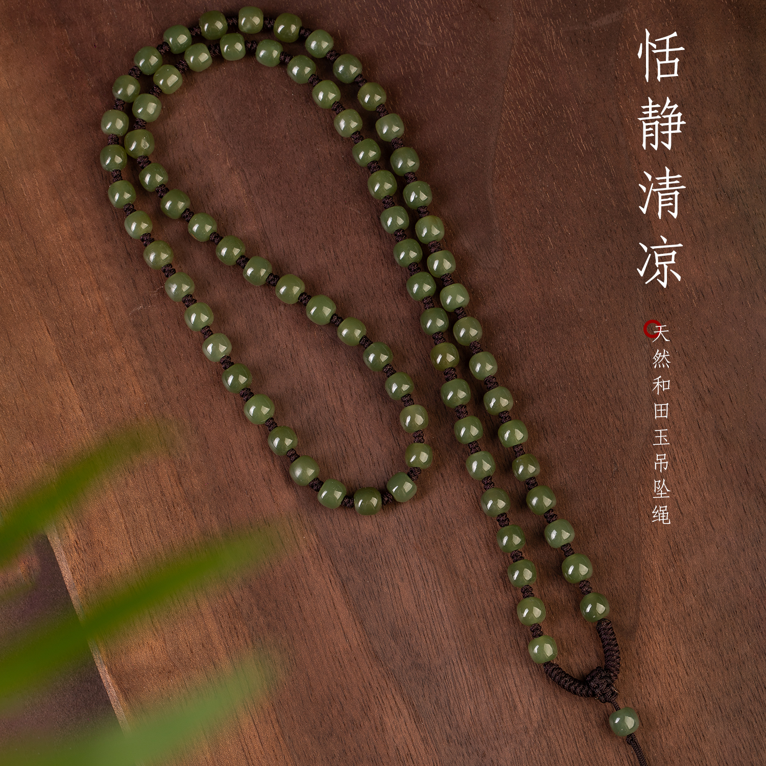 天然和田色玉石苹果珠手工编织吊坠挂绳和田青玉珠链项链绳