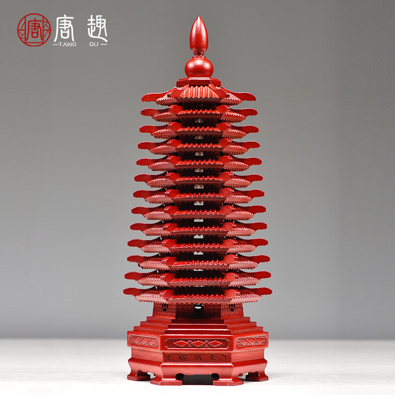 红色桃木雕刻十三层文昌塔摆件木质13层九层木制客厅书桌书房工艺
