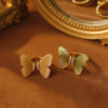 森系清新蝴蝶花园戒指轻奢高级感时尚设计开口戒可调节树脂绿色款