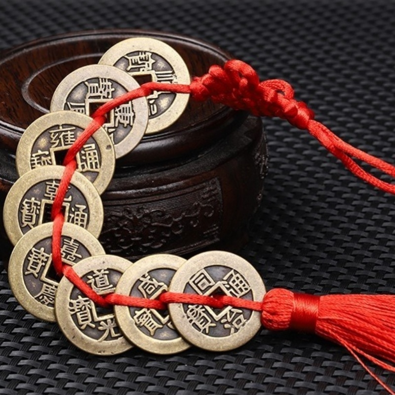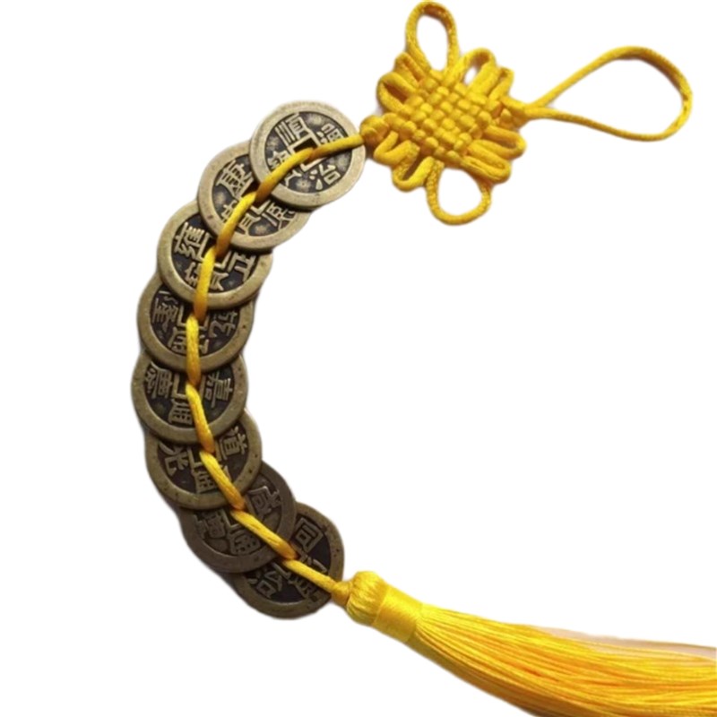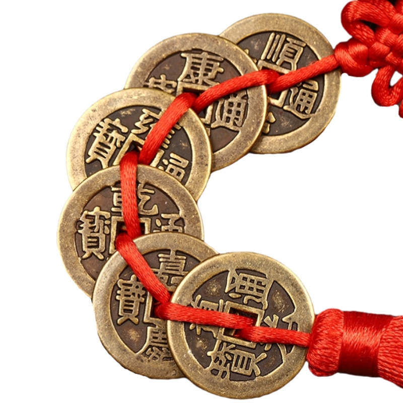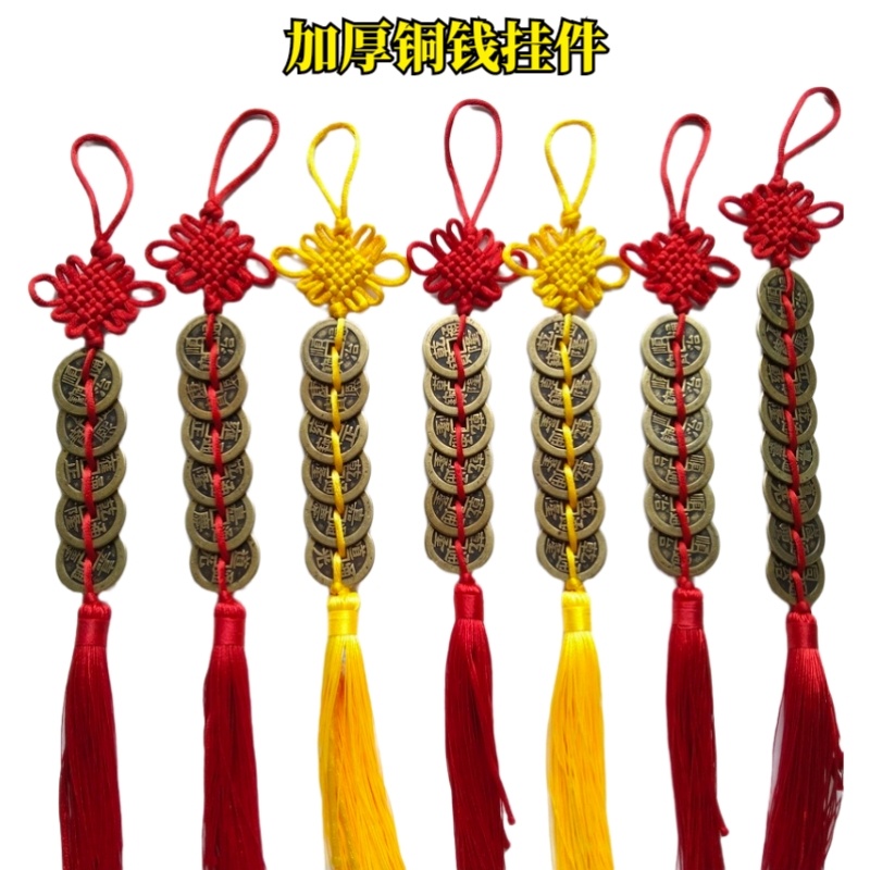 纯黄铜加厚五帝六帝铜钱挂件黄绳红绳六七八九十帝铜钱新房装修用