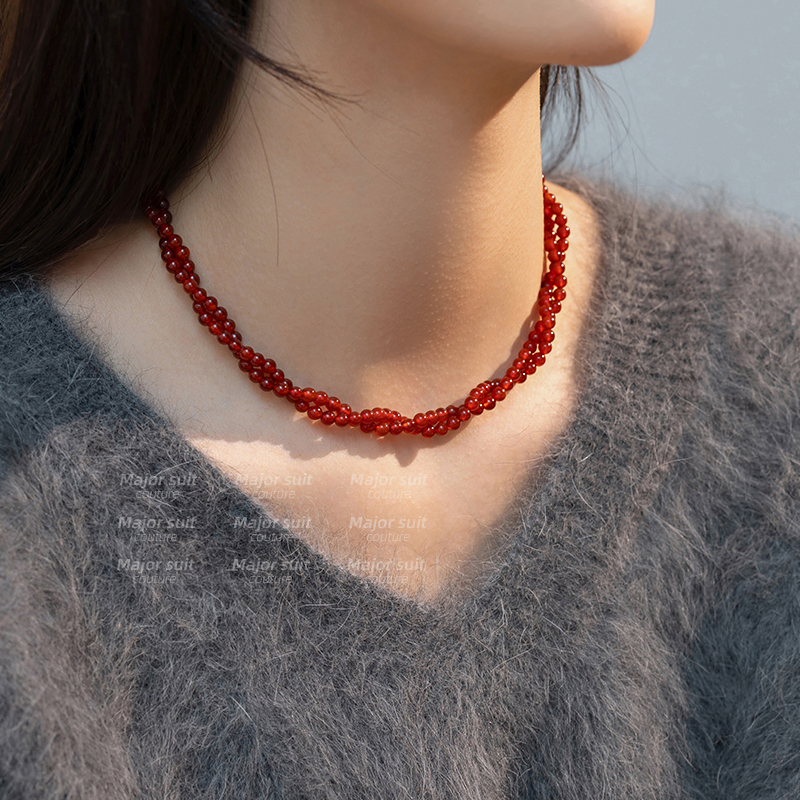 红色毛衣链串珠项链叠戴颈链女高级感轻奢小众锁骨链2025新款配饰