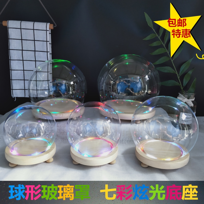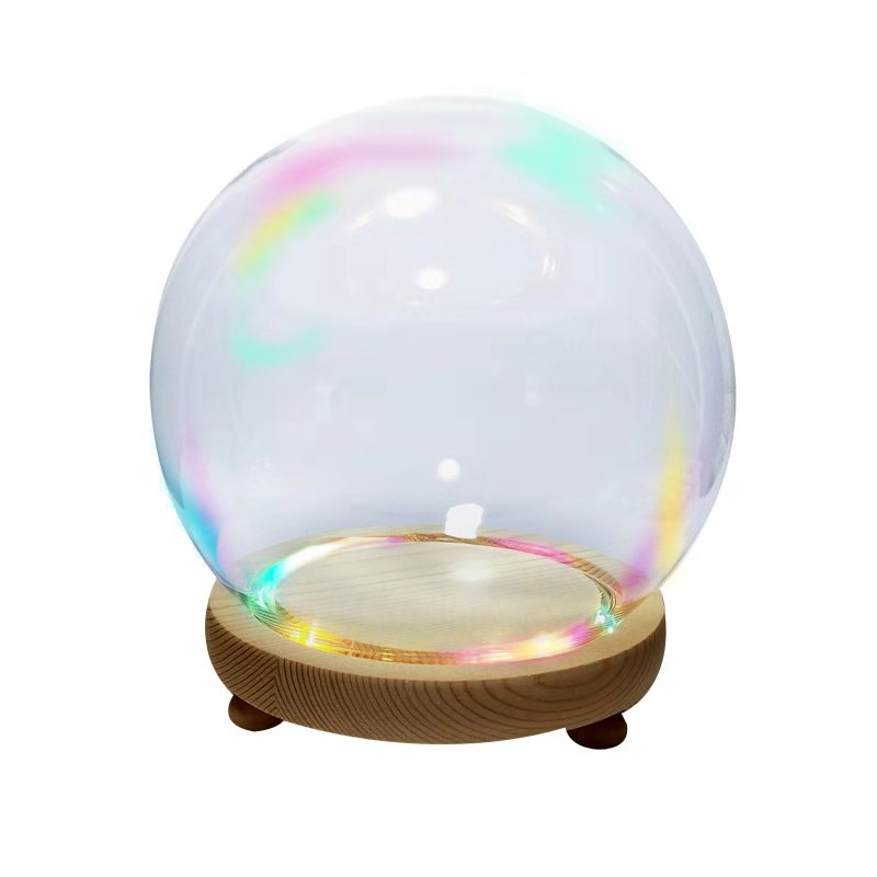 圣诞节花圆球形玻璃罩手办盲盒积木防尘罩七彩闪烁发光小夜灯