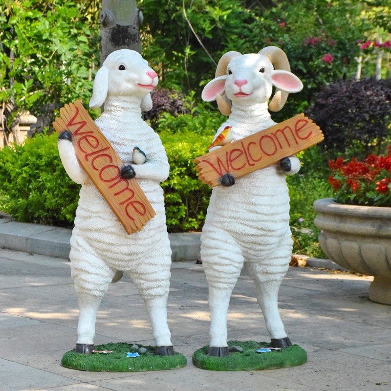 园林景观小品玻璃钢卡通绵羊花缸花园庭院草坪动物花盆装饰品