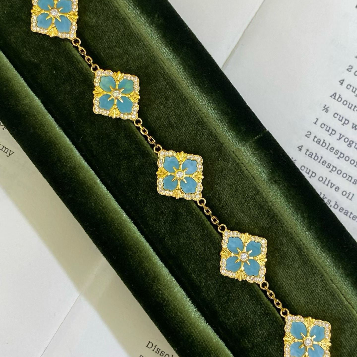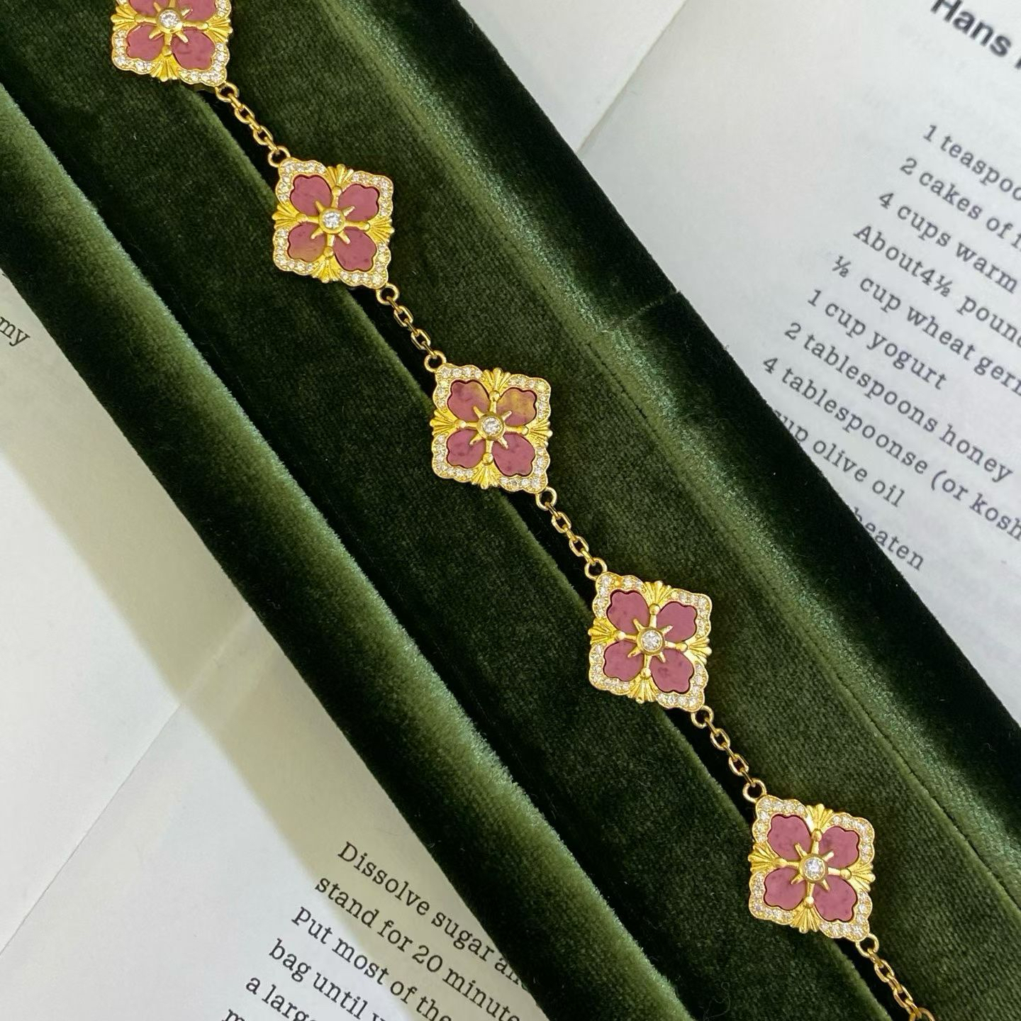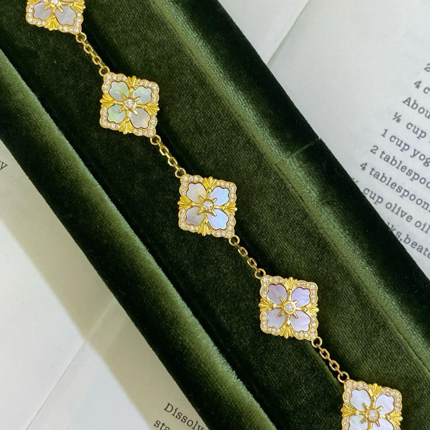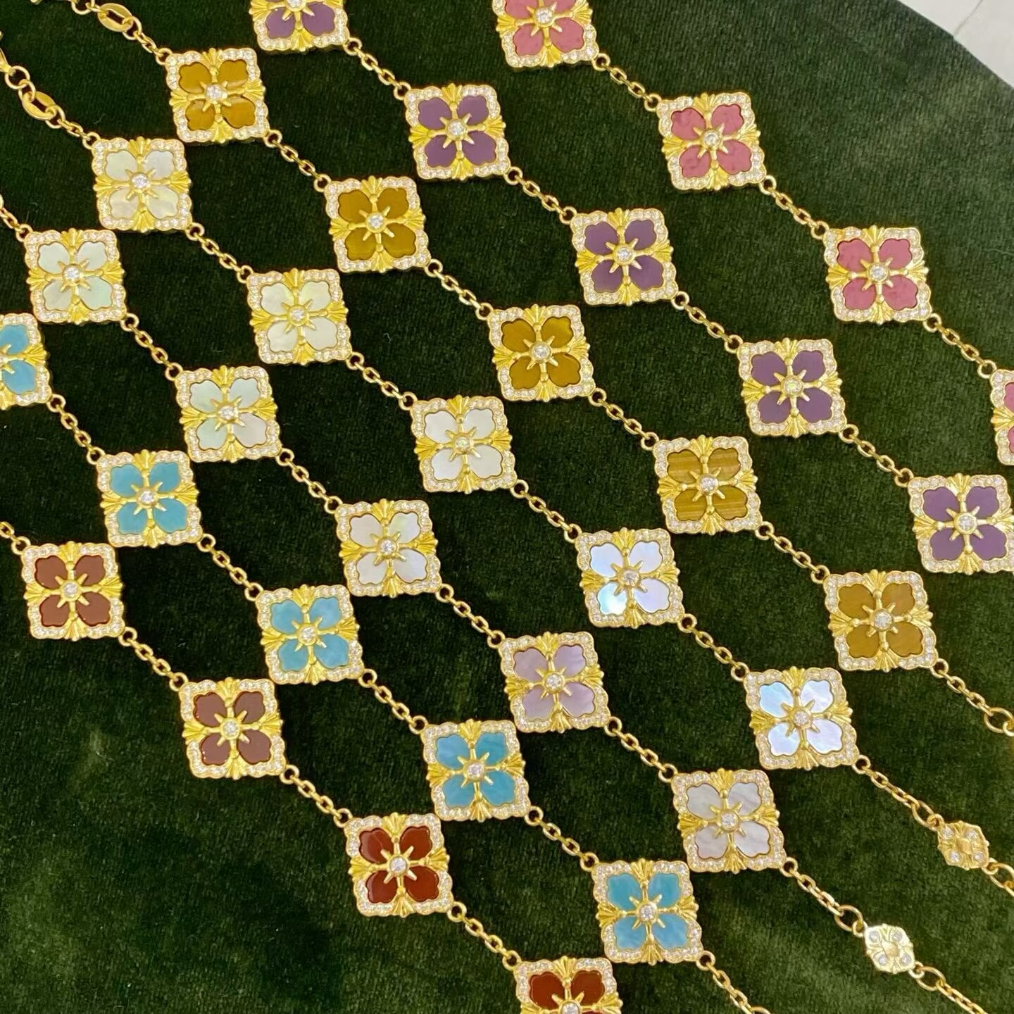 水贝布契家黄金五花手链足金999经典四叶草5G工艺点钻镶嵌送礼
