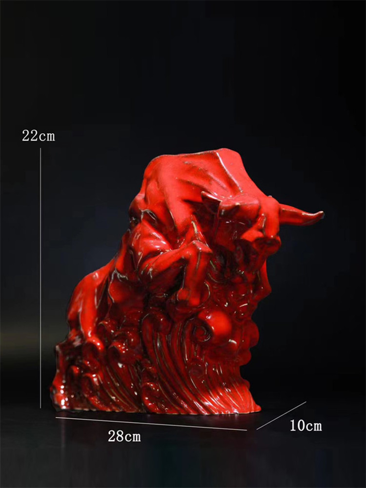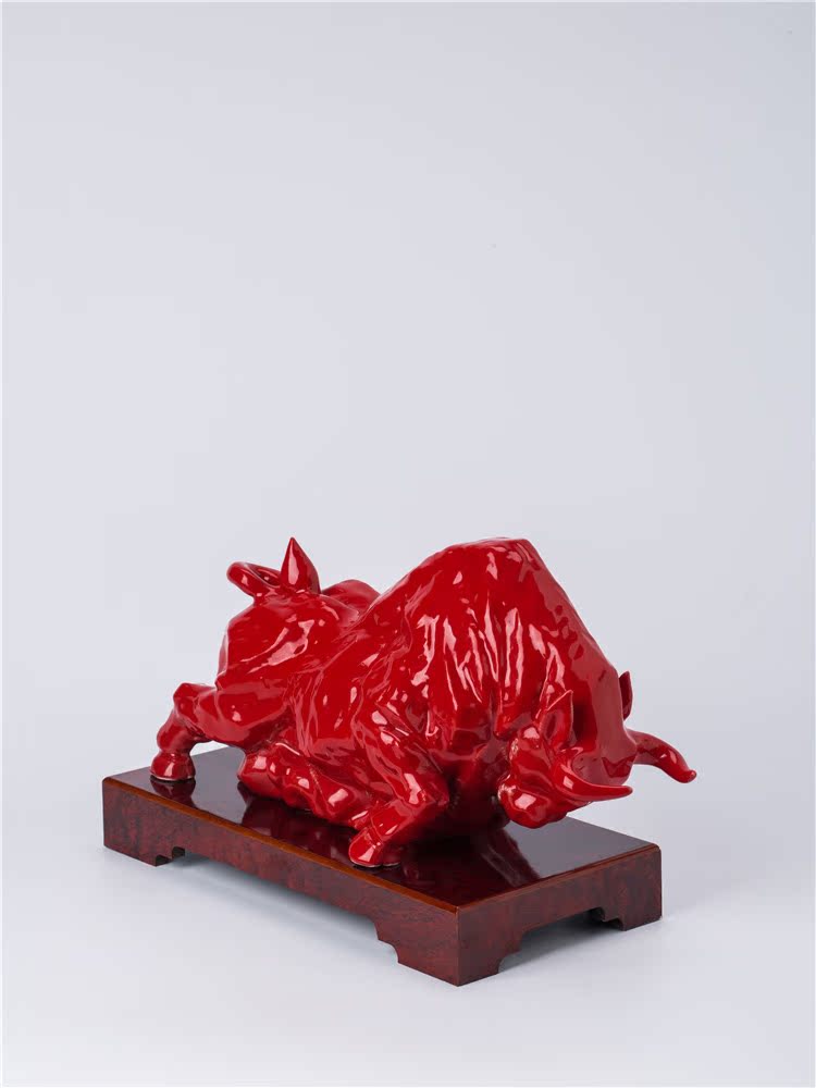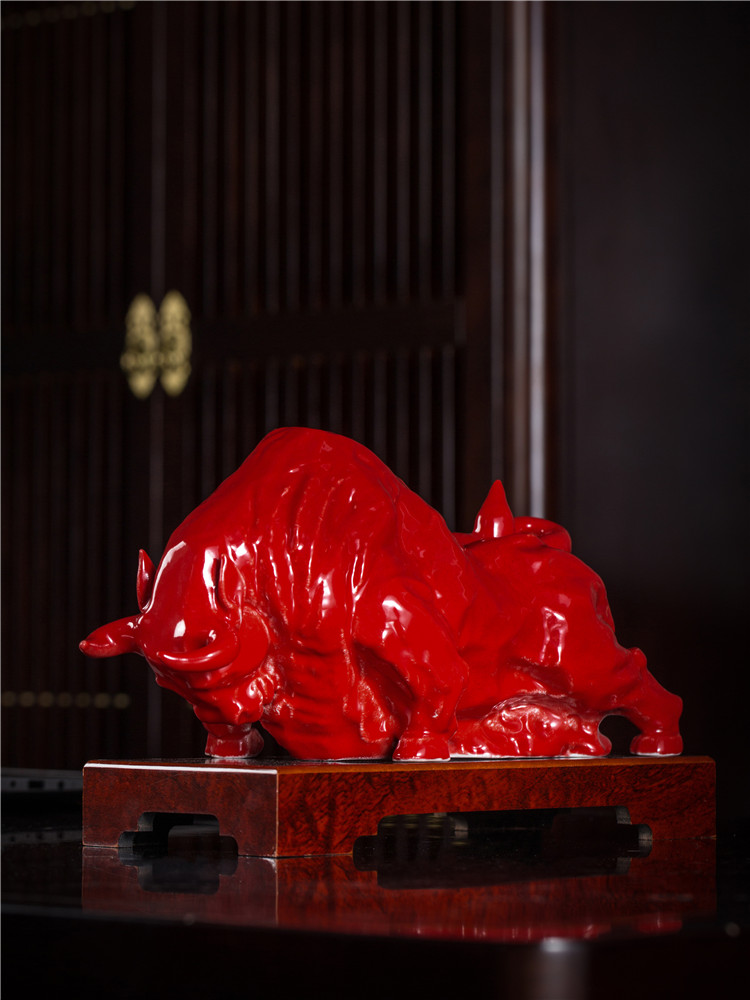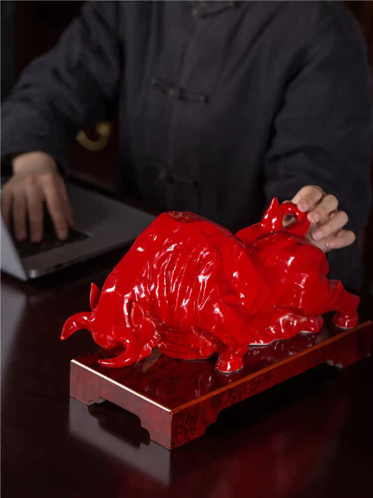 红色生肖牛原创家居摆件客厅办公室桌面装饰高端礼品手工艺术陶瓷