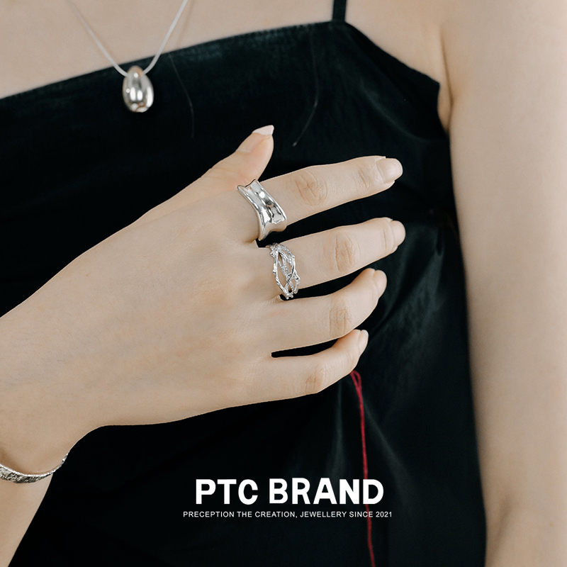 PTC小众不规则亮面波浪曲线设计925纯银冷淡风高级感男女款口戒指