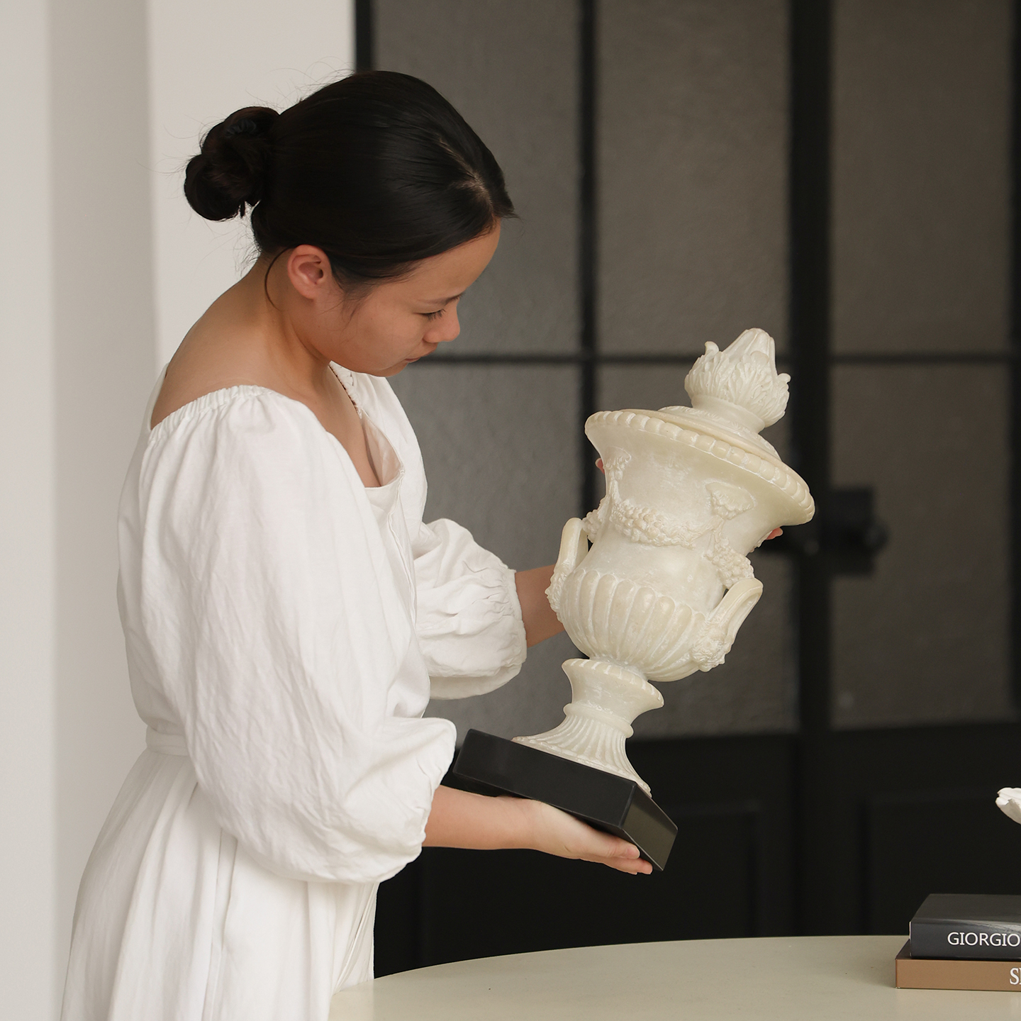 形上法式中古风仿玉石花瓶摆件设计师款欧式客厅玄关装饰品花器