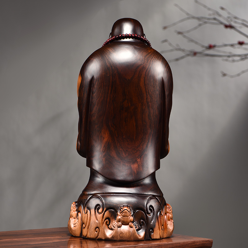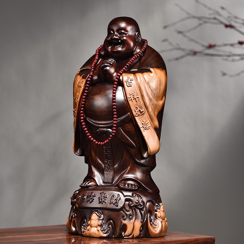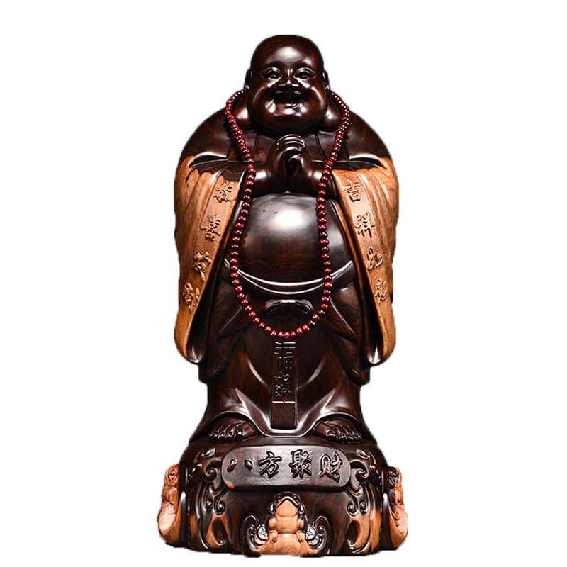 黑檀实木雕刻弥勒佛根雕摆件大号笑佛像工艺品红木家居送礼品摆设