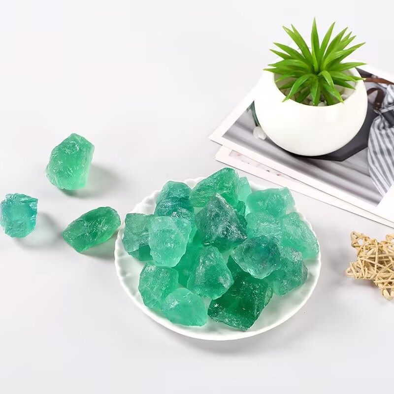 天然绿水晶摆件原石绿萤石扩香石香薰石鱼缸石客厅桌面家居装饰品