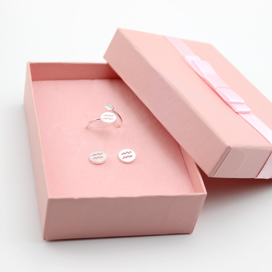 星座开运守护者 luer925纯银防过敏十二星座系列耳钉开口戒指套盒