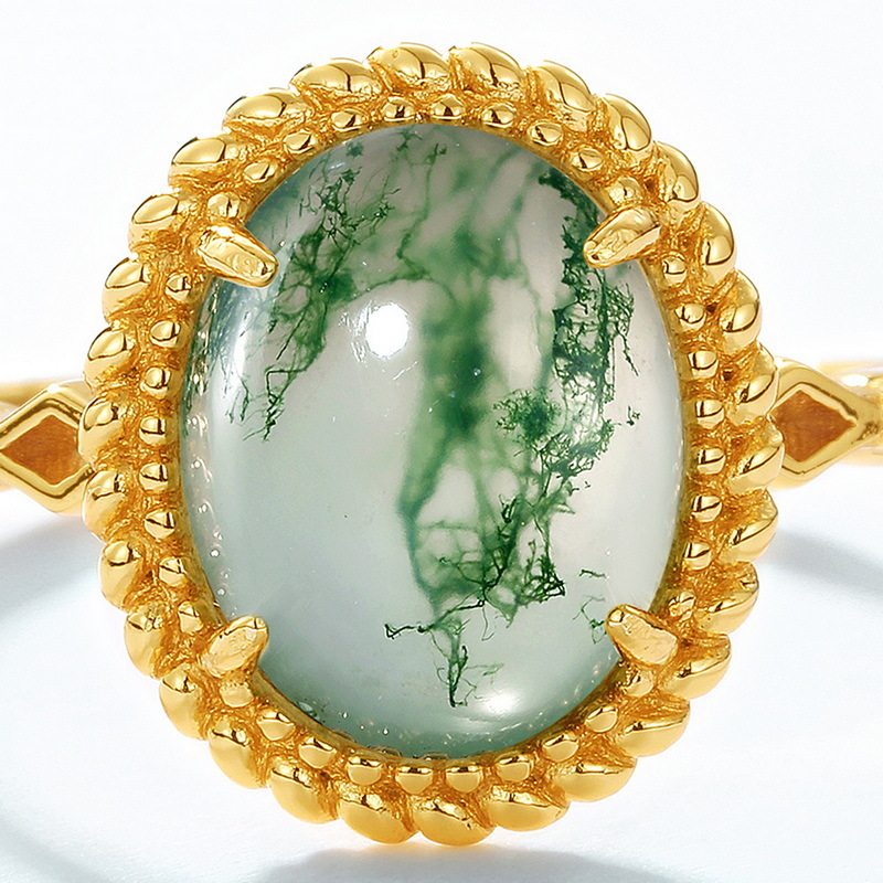 新款夸张个性几何S925银渡18K金PT950铂金戒指森系绿苔藓戒指女