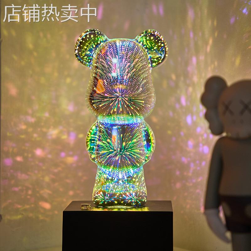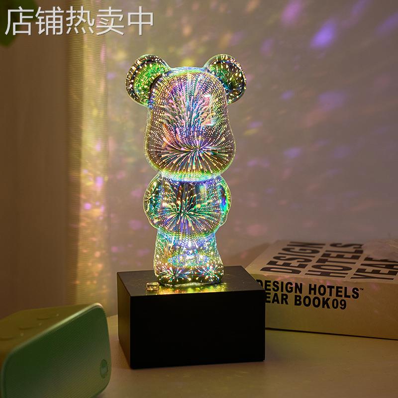 新款暴力小熊3D玻璃灯床头小夜灯氛围灯 家居好物3D 烟花玻璃小熊