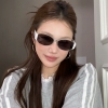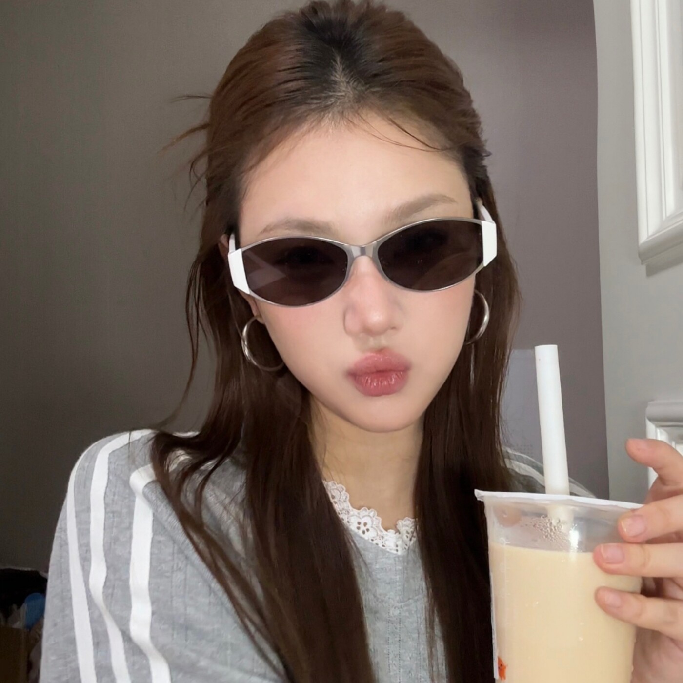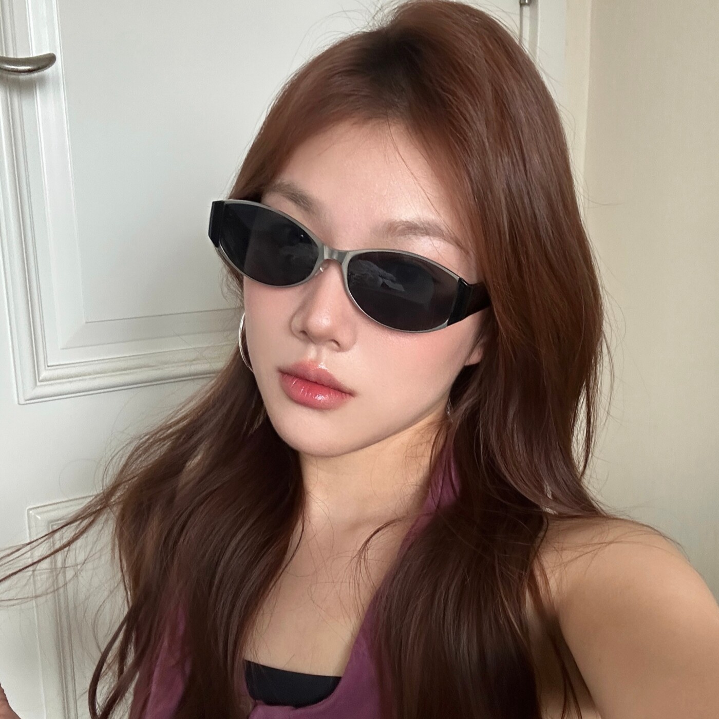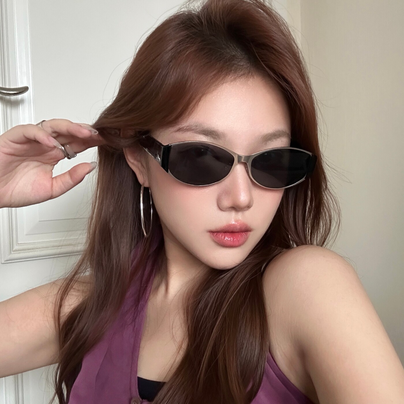 金属老钱风猫眼墨镜女潮方圆脸显瘦高级感银框黑色防紫外线太阳镜