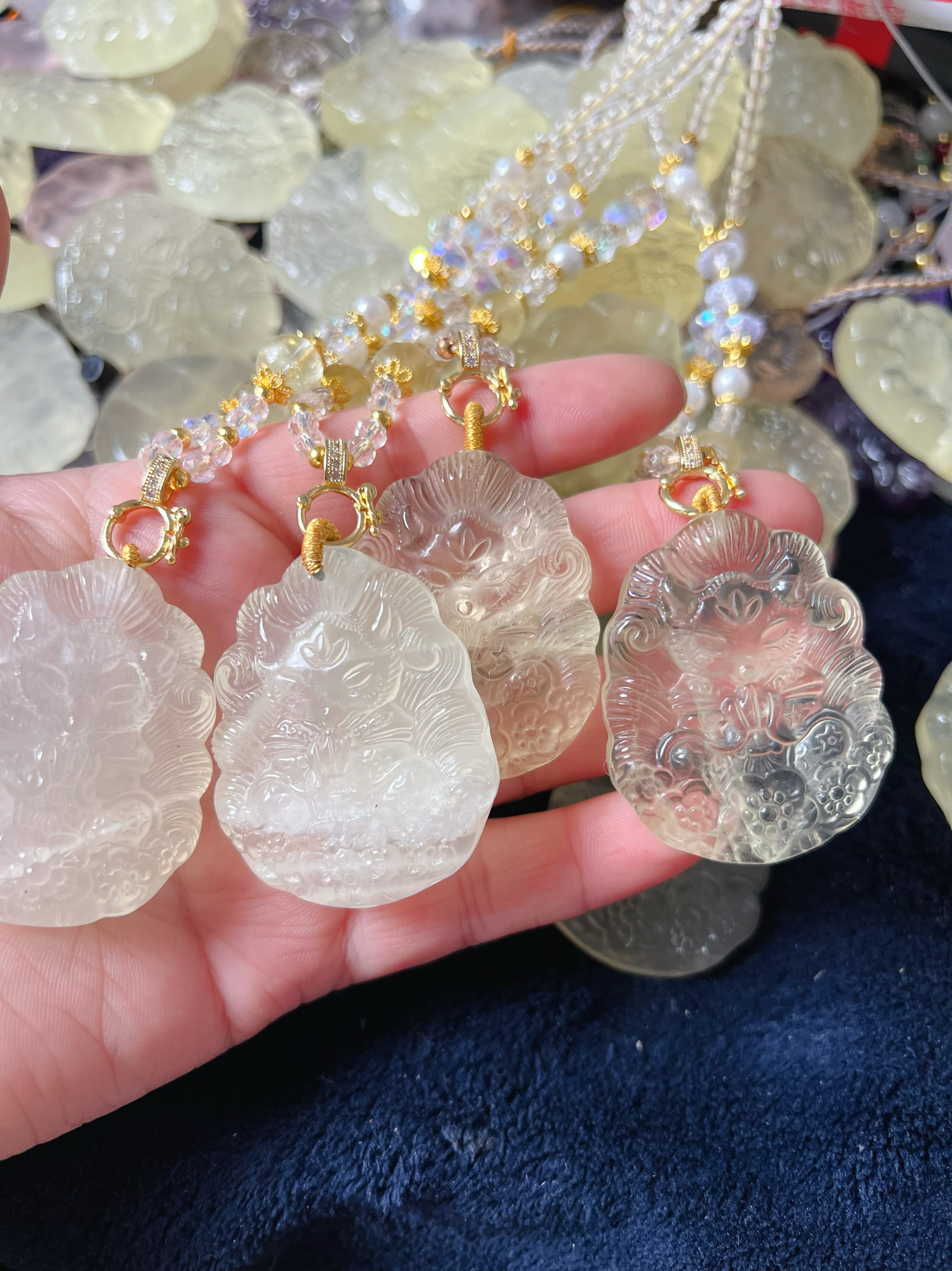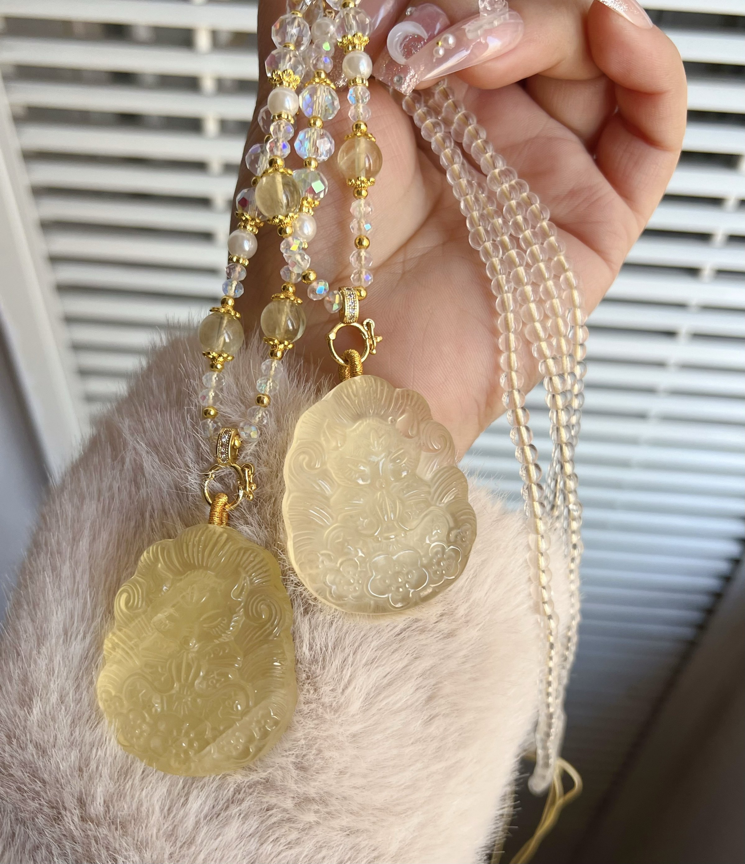 清货天然黄水晶九尾狐吊坠招财桃花项链带珠链毛衣链百搭礼物女
