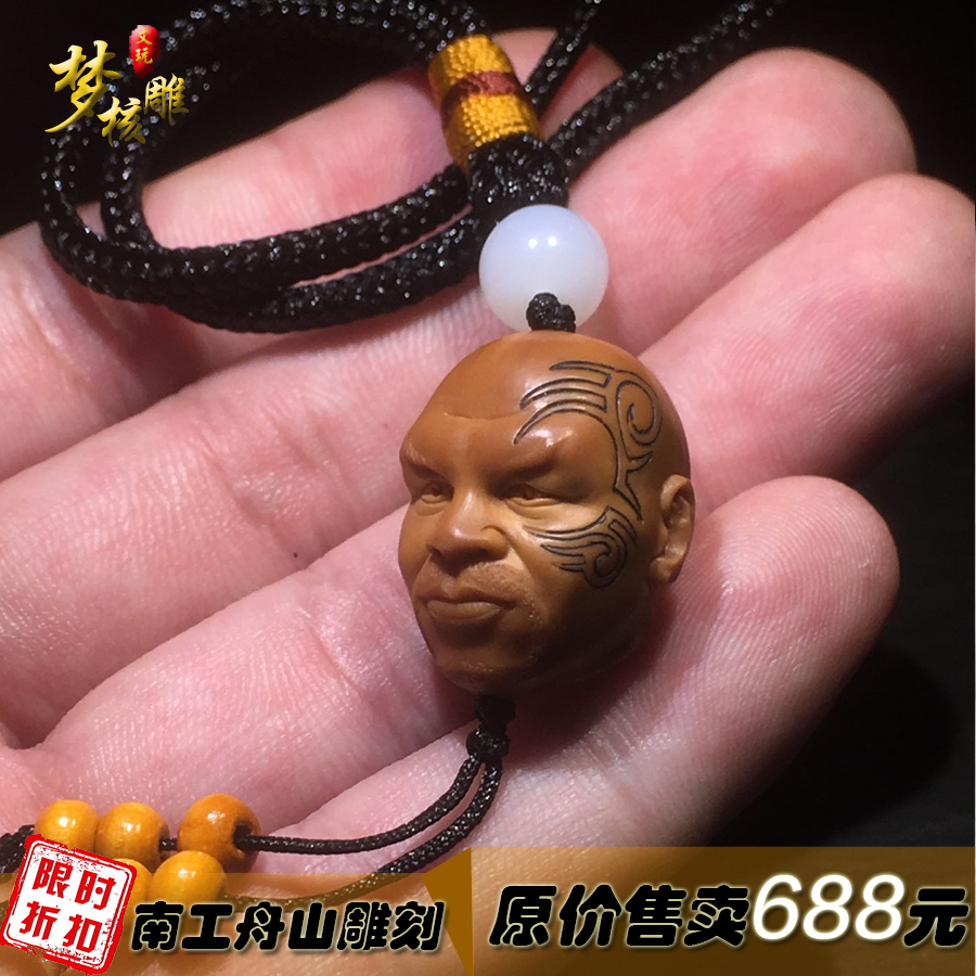 橄榄核雕刻泰森单粒拳王单籽橄榄胡人物手把件吊坠文玩手工雕刻男