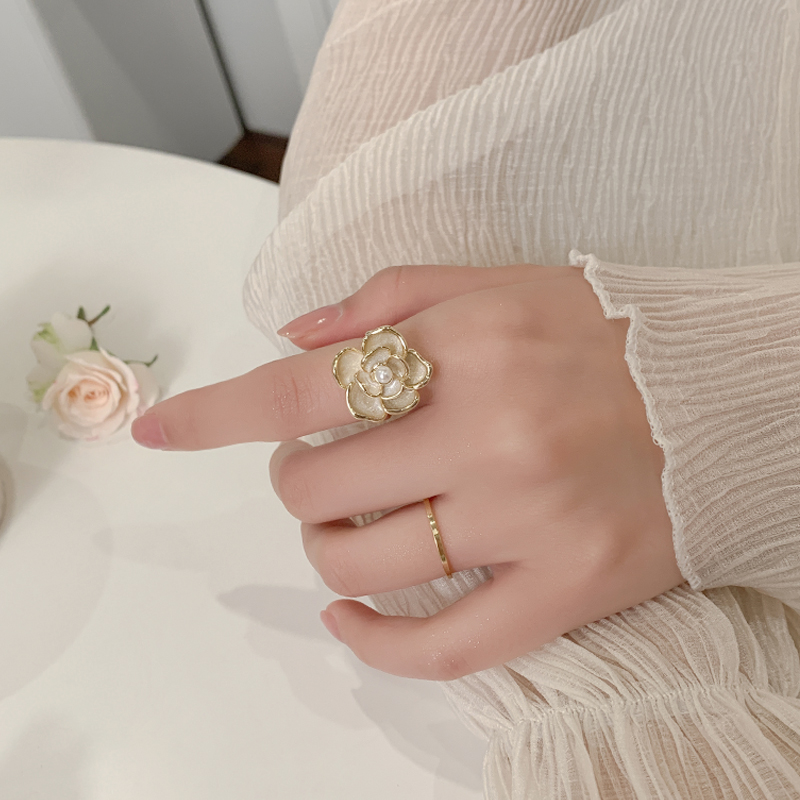 山茶花戒指女自律开口可调节食指戒闺蜜独特小众设计高级感新款潮