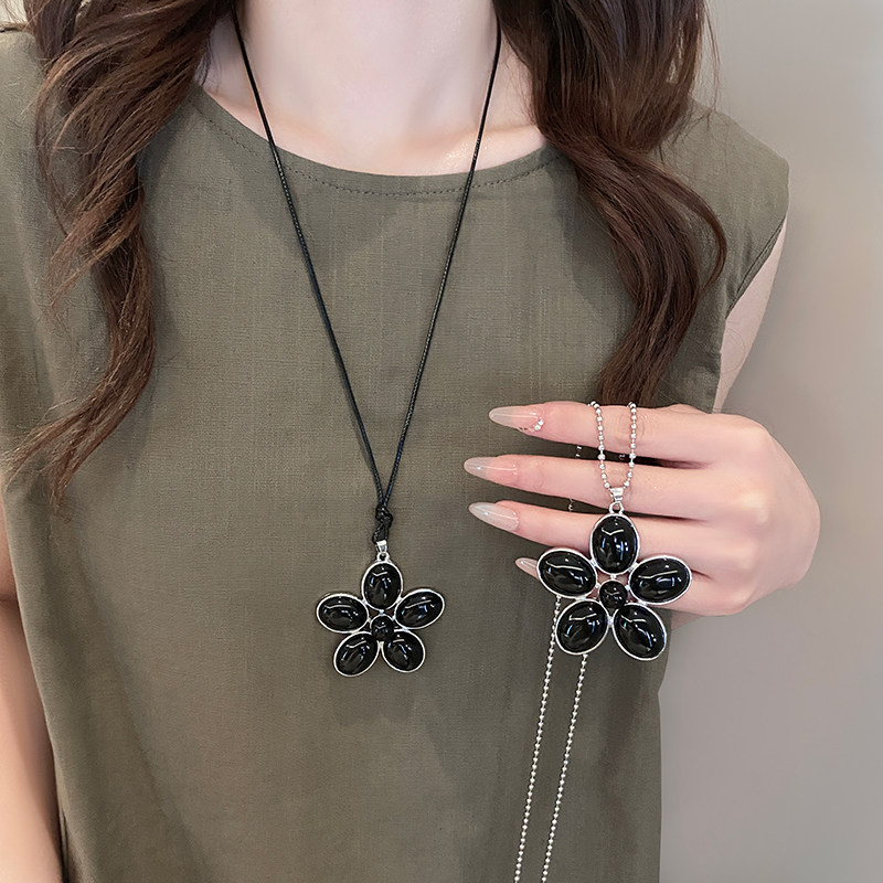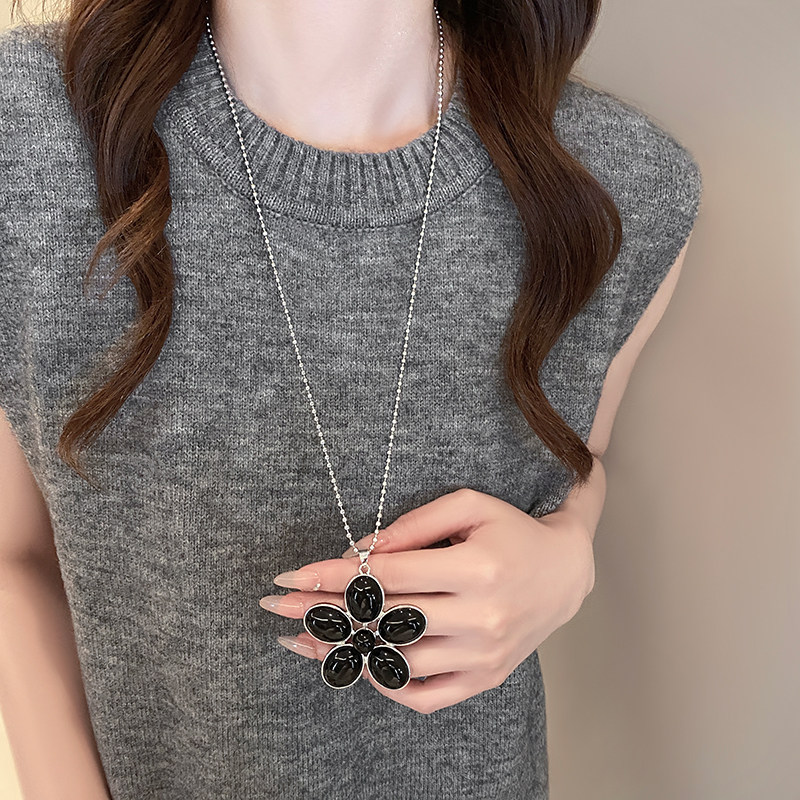 2025新款爆款黑色花瓣吊坠项链高级感长款毛衣链时尚百搭个性配饰