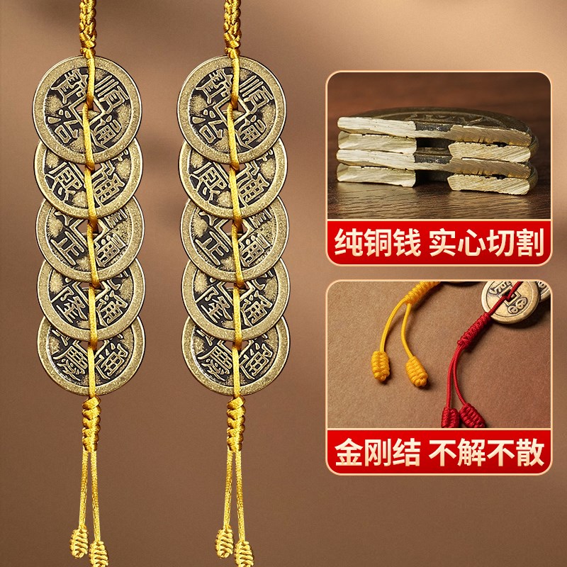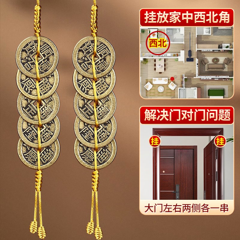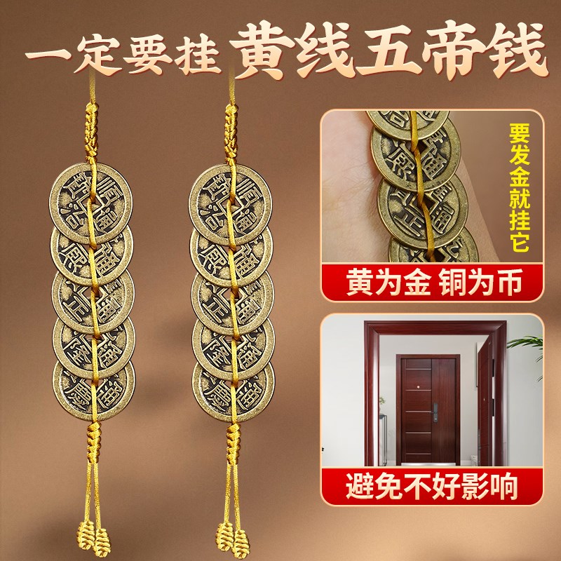 五帝钱葫芦挂件门对门单黄铜黄线绳六帝钱加厚压门槛家居客厅摆件