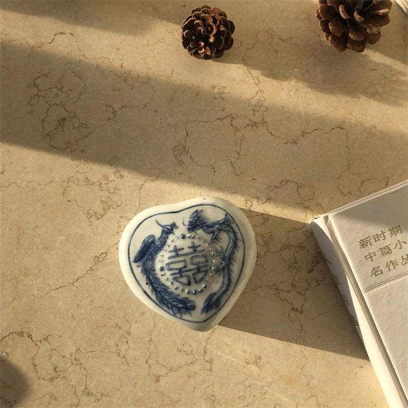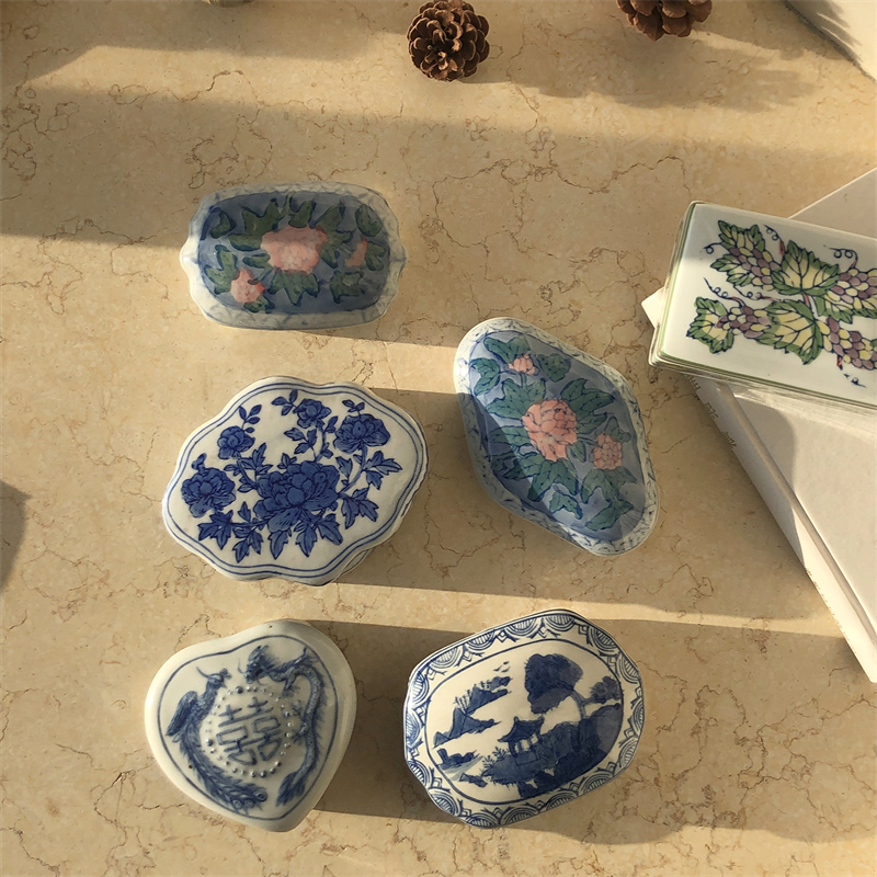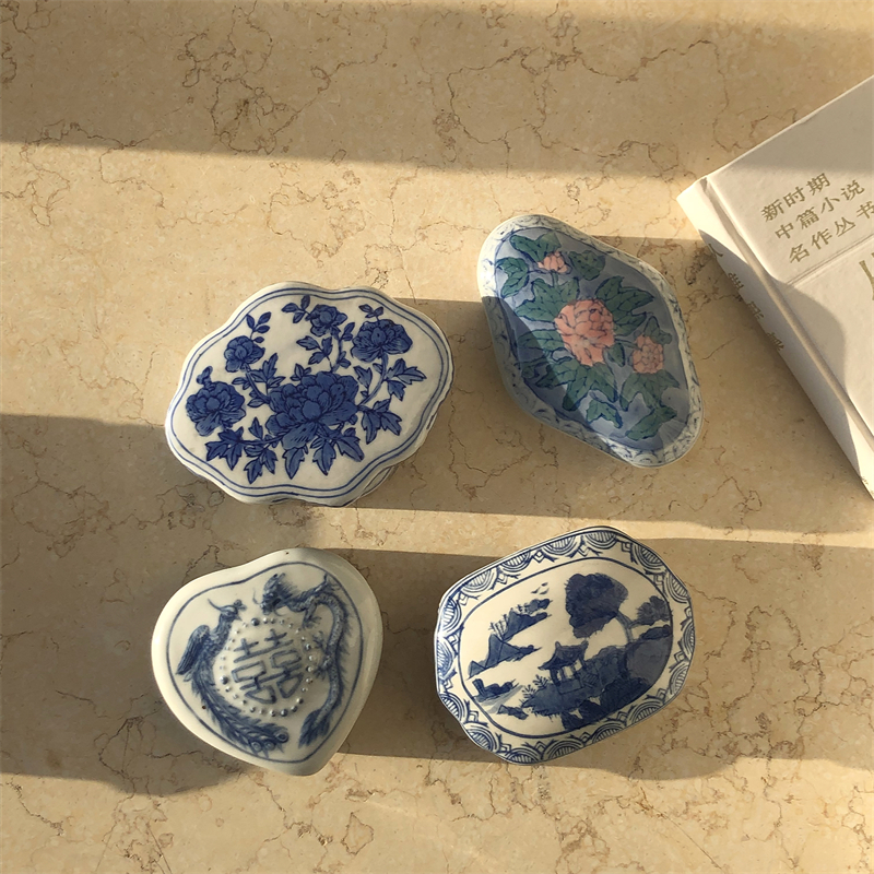 复古老货五彩青花印泥盒首饰盒陶瓷收纳盒手帐粉盒中式软装摆件