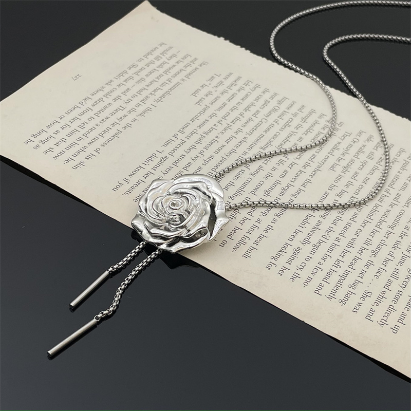 日韩ins风玫瑰花项链女小众设计甜酷锁骨链辣妹百搭抽拉式毛衣链